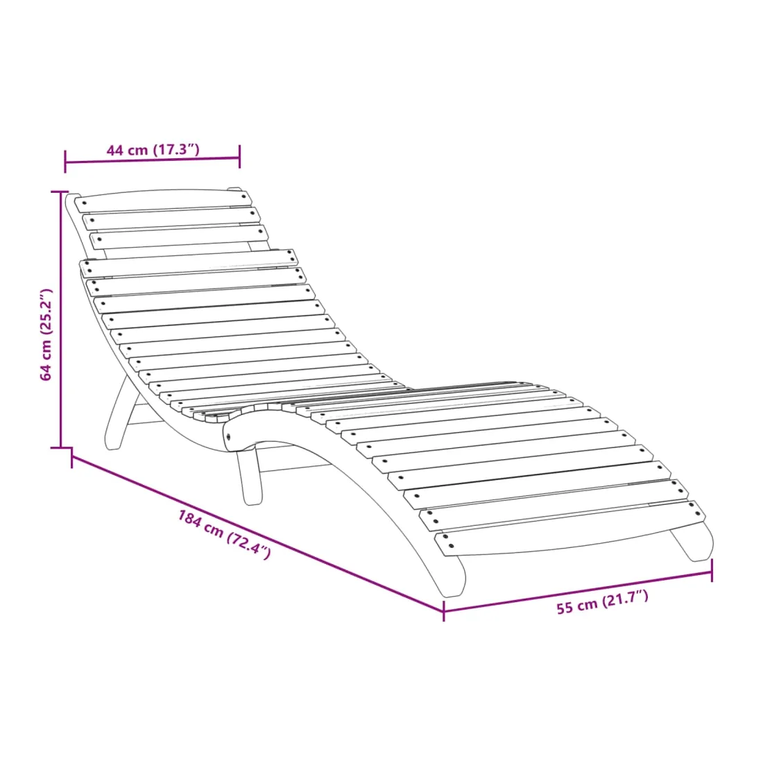 Ces chaises longues en bois classiques sont idéales pour prendre un bain de soleil et vous détendre près de la piscine, sur la terrasse ou dans le jardin. Bois d'acacia massif : le bois d'acacia massif est un beau matériau naturel. Le bois d'acacia est un bois dur tropical, dense, robuste et durable. Par conséquent, la chaise longue en bois d'acacia massif est stable et facile à entretenir.Fonction pliable : vous pouvez plier la chaise longue pour économiser de l'espace lorsqu'elle n'est pas utilisée.Expérience confortable : la conception ergonomique du lit de bronzage confortable assure un confort et une détente optimaux. Bon à savoir :Pour que vos meubles d'extérieur restent beaux, nous vous recommandons de les protéger avec une housse imperméable.