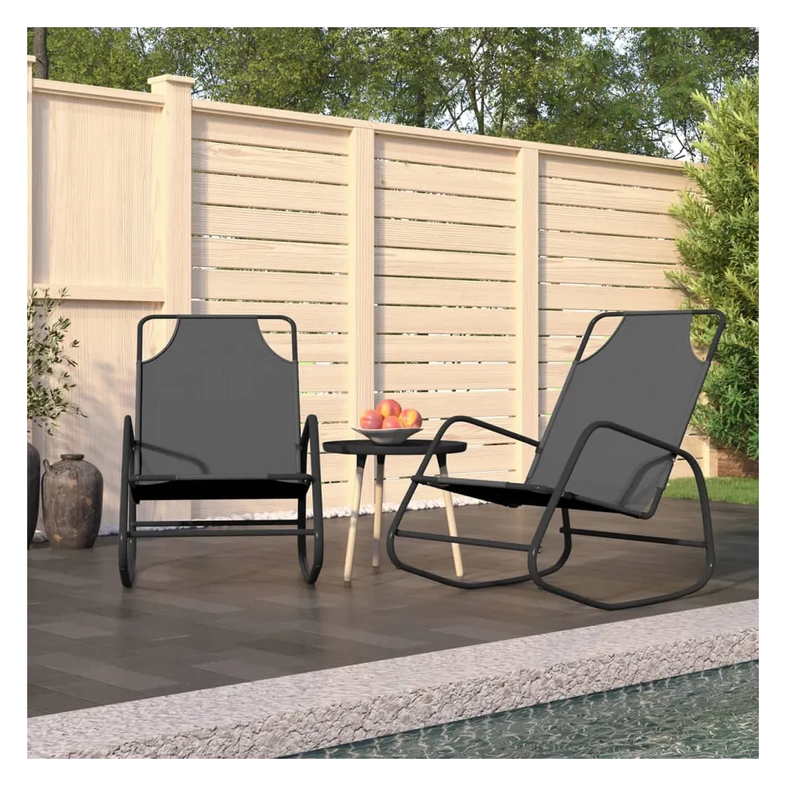 Prenez une pause de votre vie quotidienne trépidante sur ces chaises longues à bascule pratiques ! Ces chaises à bascule sont un excellent compagnon de loisirs et de vacances pour vous détendre et profiter du beau temps. Tissu de qualité : la surface en maille textilène est respirante, assurant une bonne circulation de l'air et empêchant l'accumulation de sueur. Elle est également facile à nettoyer avec un chiffon humide.Pieds à bascule : détendez-vous en vous asseyant confortablement tout en profitant d'un mouvement de bercement doux et apaisant.Cadre robuste : la chaise longue est fabriquée en acier enduit de poudre, ce qui la rend résistante à la rouille et robuste.Design confortable : dotée d'une surface de couchage confortable, la chaise longue berçante offre le plus grand confort lorsque vous vous déplacez d'avant en arrière. Remarque :Afin de prolonger la durée de vie de votre mobilier d'extérieur, nous vous recommandons de le protéger avec une housse imperméable.