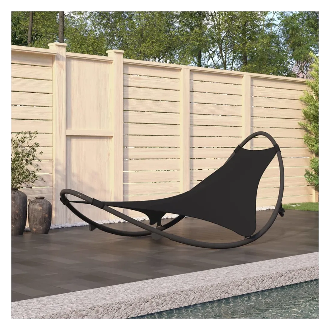 Chaise longue à bascule avec roues Acier et textilène Noir