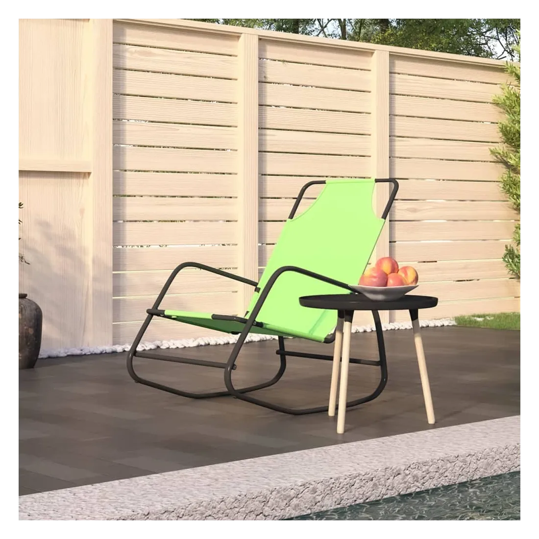 vidaXLPrenez une pause de votre vie quotidienne trépidante sur cette chaise longue à bascule pratique ! Cette chaise à bascule est un excellent compagnon de loisirs et de vacances pour vous détendre et profiter du beau temps. Tissu de qualité : la surface en maille textilène est respirante, assurant une bonne circulation de l'air et empêchant l'accumulation de sueur. Elle est également facile à nettoyer avec un chiffon humide.Pieds à bascule : détendez-vous en vous asseyant confortablement tout en profitant d'un mouvement de bercement doux et apaisant.Cadre robuste : la chaise longue est fabriquée en acier enduit de poudre, ce qui la rend résistante à la rouille et robuste.Design confortable : dotée d'une surface de couchage confortable, la chaise longue berçante offre le plus grand confort lorsque vous vous déplacez d'avant en arrière. Remarque :Afin de prolonger la durée de vie de votre mobilier d'extérieur, nous vous recommandons de le protéger avec une housse imperméable.