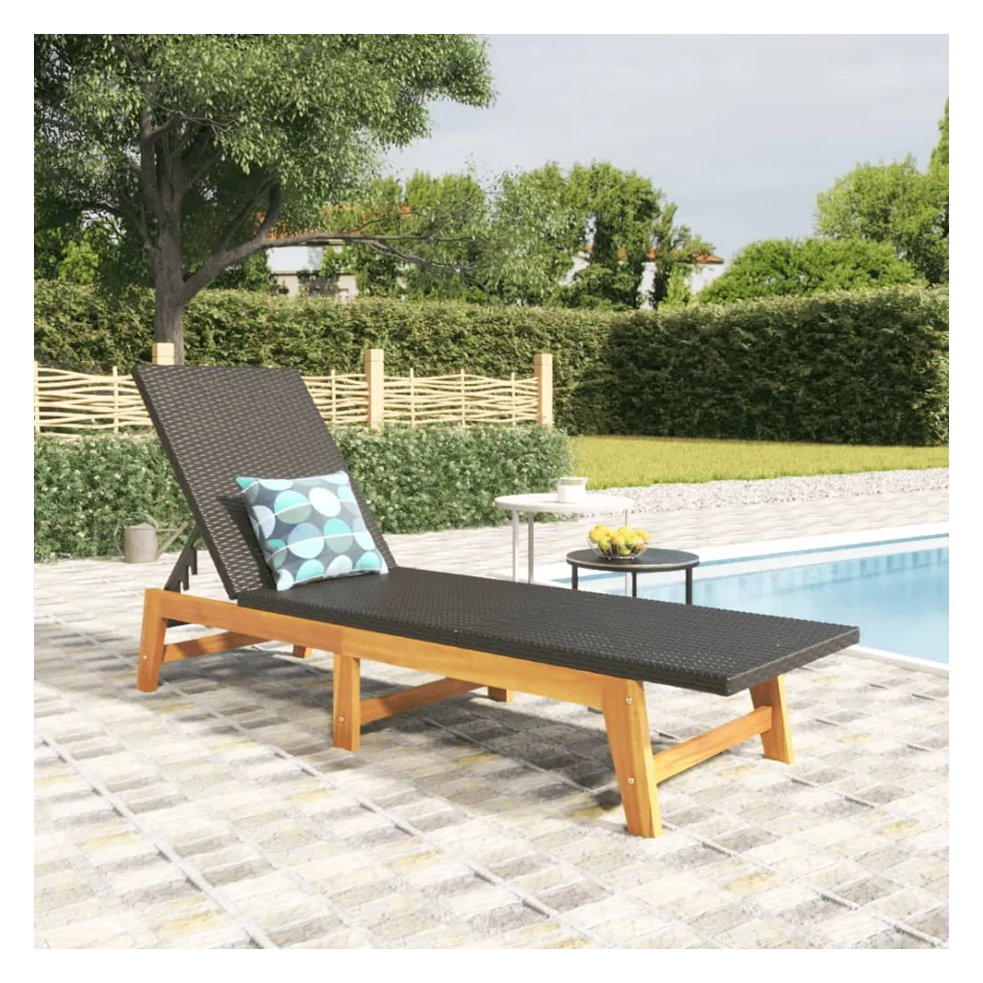 Cette chaise longue classique est idéale pour prendre un bain de soleil et vous détendre près de la piscine, sur la terrasse ou dans le jardin. Bois d'acacia massif : le bois d'acacia massif est un matériau naturel magnifique. Le bois d'acacia est un bois dur tropical, dense, robuste et durable. Par conséquent, le cadre de la chaise longue en bois d'acacia à finition à l'huile est stable et facile à entretenir.Matériau durable : la résine tressée, également connue sous le nom de rotin poly, résiste aux intempéries et est facile à nettoyer. Elle reste belle à l'extérieur pendant une longue période. Elle offre une excellente qualité, commodité et un aspect esthétique.Dossier réglable : cette chaise longue confortable dispose d'un dossier inclinable à 4 positions pour une relaxation optimale. Remarque :Pour que vos meubles d'extérieur restent beaux, nous vous recommandons de les protéger avec une housse imperméable. Bon à savoir :Pour faciliter au maximum le montage, chaque produit est livré avec des instructions.