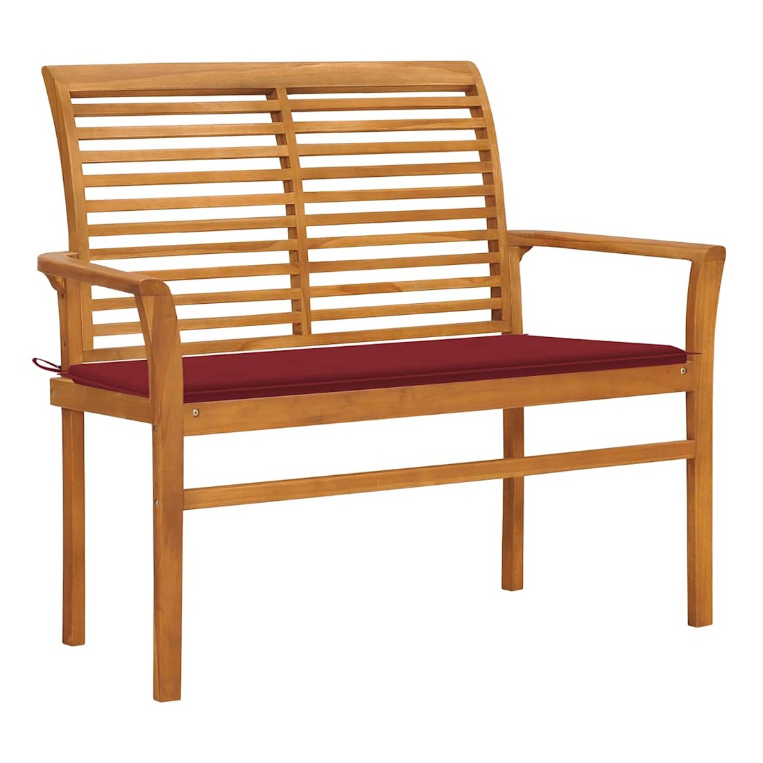 Banc de jardin avec coussin rouge bordeaux 112 cm Teck massif