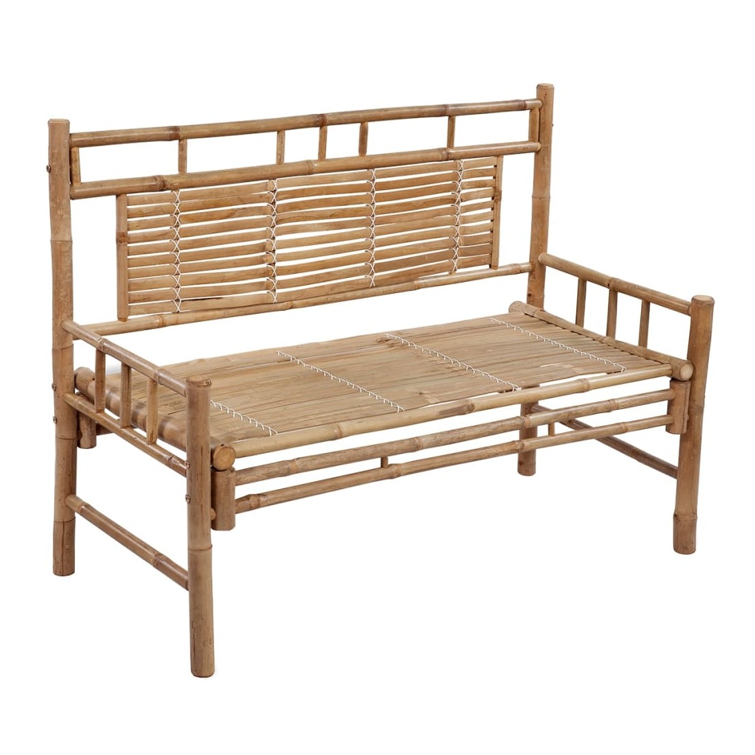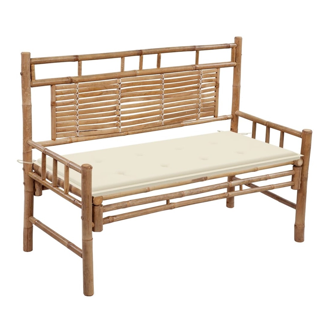 Ce banc classique en bambou sera un excellent supplément à votre jardin ou à tout autre espace extérieur. Le banc d'extérieur est conçu avec un dossier, ce qui est confortable pour vous asseoir tout en lisant ou en vous reposant. Fabriqué en bambou résistant aux intempéries et à l'eau, le banc de jardin est durable et stable. Il est également facile à nettoyer avec un chiffon humide. De plus, le coussin inclus offre du confort supplémentaire lors de votre temps de détente. Il est composé à 100 % de polyester qui a été traité pour le rendre imperméable. Chaque coussin a deux jeux de cordes pour le fixer fermement sur le banc.