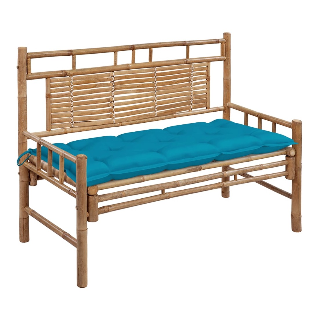 Ce banc classique en bambou sera un excellent supplément à votre jardin ou à tout autre espace extérieur. Le banc d'extérieur est conçu avec un dossier, ce qui est confortable pour vous asseoir tout en lisant ou en vous reposant. Fabriqué en bambou résistant aux intempéries et à l'eau, le banc de jardin est durable et stable. Il est également facile à nettoyer avec un chiffon humide. De plus, le coussin inclus offre du confort supplémentaire lors de votre temps de détente. Il est composé à 100 % de polyester qui a été traité pour le rendre imperméable. Chaque coussin a deux jeux de cordes pour le fixer fermement sur le banc. Remarque : afin de prolonger la durée de vie des meubles d'extérieur, nous vous recommandons de les protéger avec une housse imperméable.