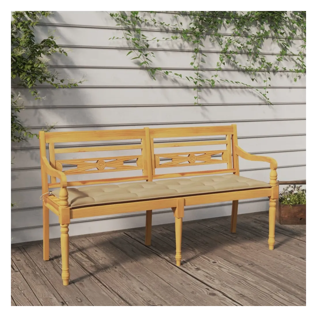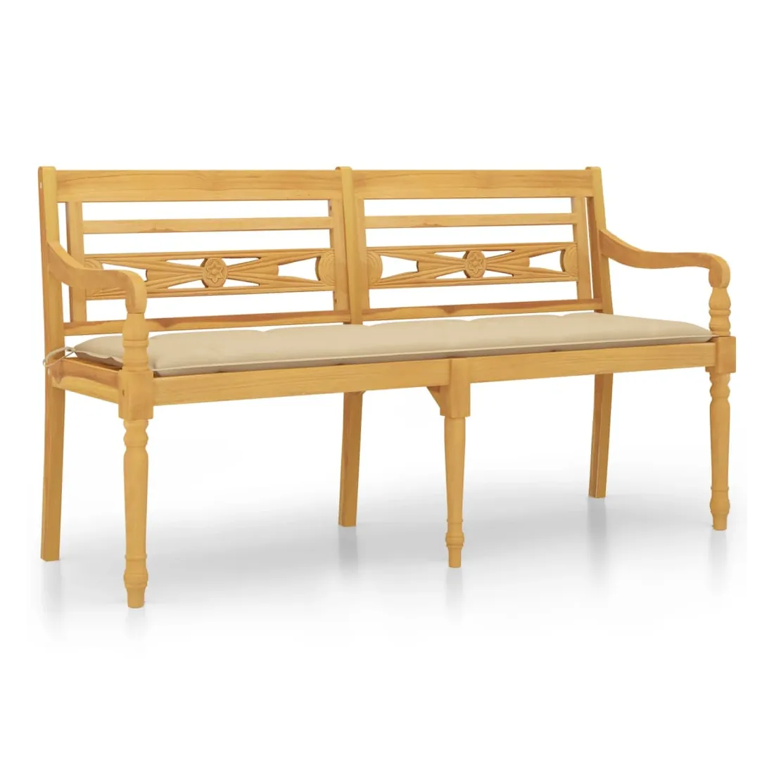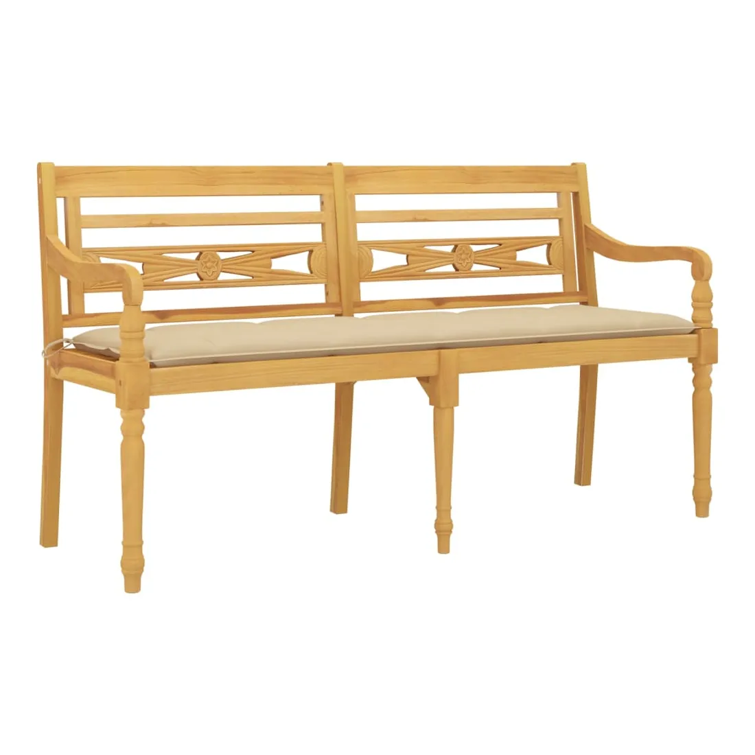 Banc Batavia avec coussin beige 150 cm Bois de teck massif