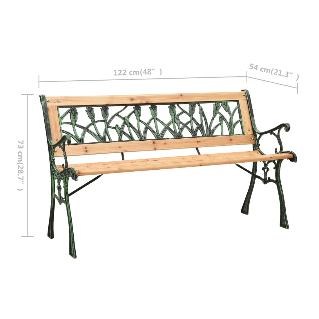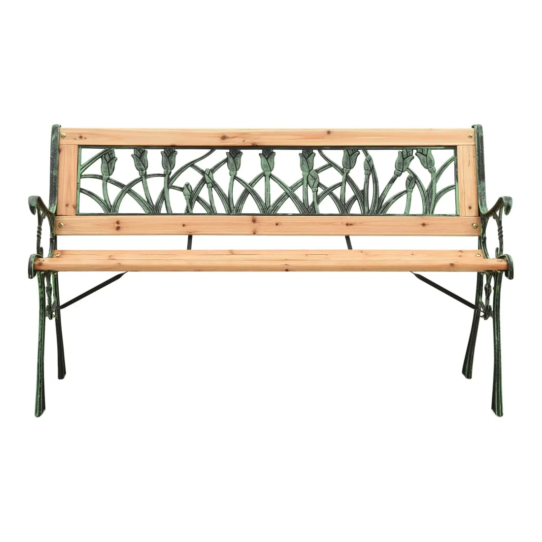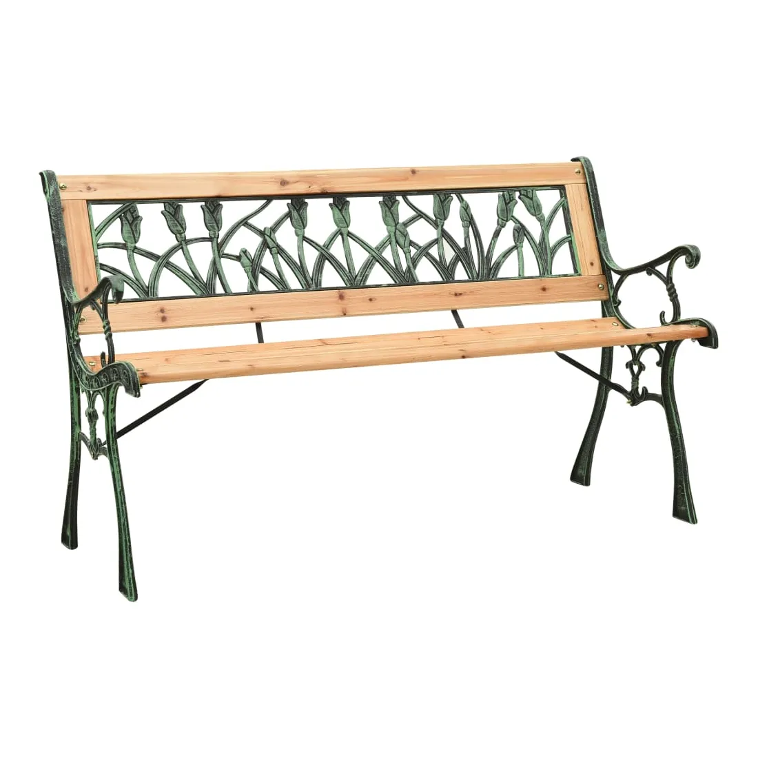 Ce banc de jardin au design nostalgique attire tous les regards et constitue le choix idéal pour votre jardin ou votre terrasse. Le banc d'extérieur est en bois de sapin massif, ce qui le rend stable et durable. Il a également des solides pieds en fonte de haute stabilité. Le dossier décoratif en PVC au motif de tulipe fait de ce siège de jardin un excellent supplément à la façade de votre maison.