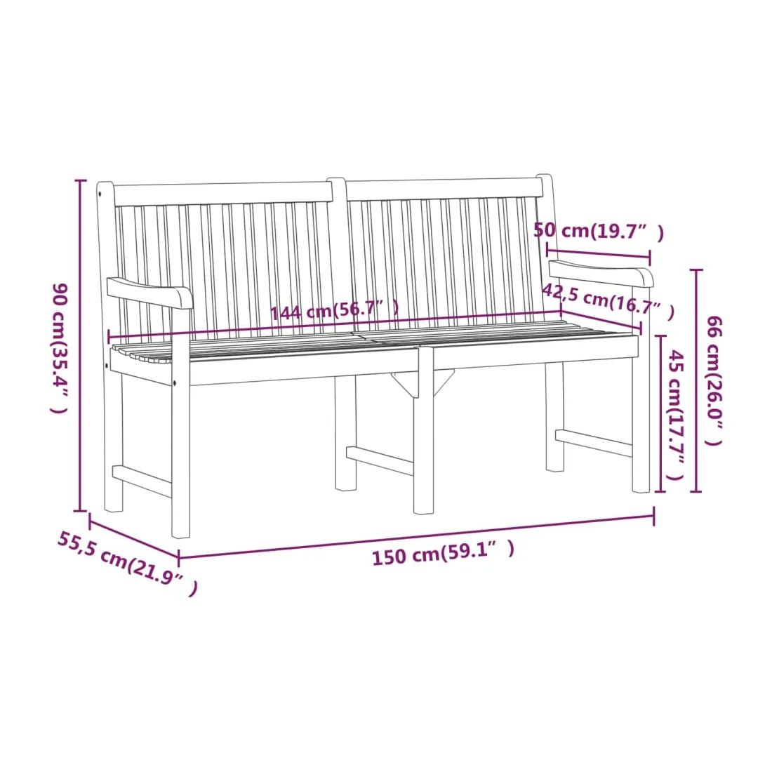 - Dimensions : 150 x 55,5 x 90 cm (l x P x H)