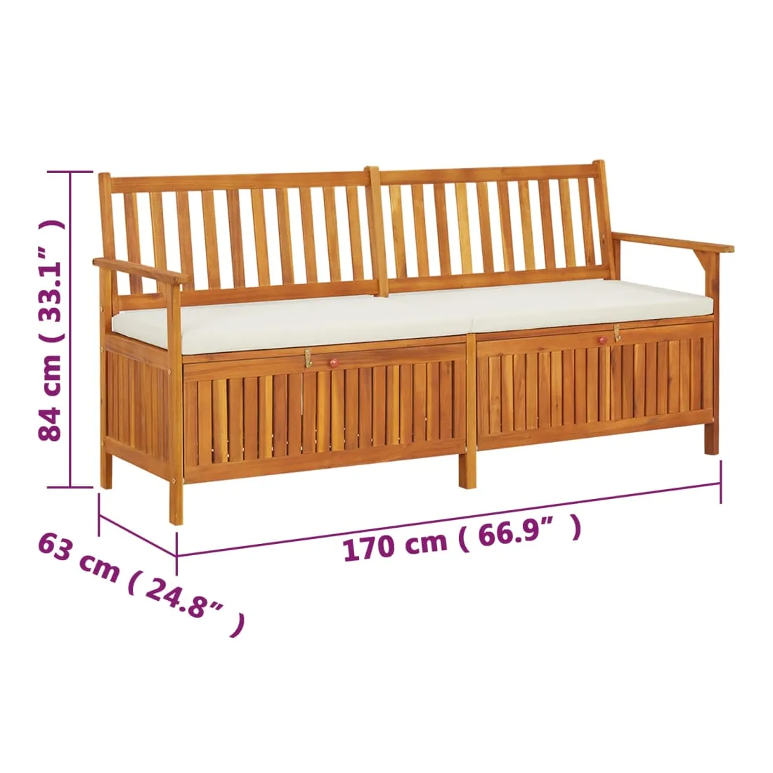 Mettez de l'ordre dans votre décor intérieur et extérieur avec ce banc de rangement polyvalent en bois ! Matériau de première qualité : le bois d'acacia massif est un matériau naturel magnifique. C'est un bois dur tropical, qui est dense, robuste et durable. Assise optimale : le siège bien rembourré ajoute une expérience d'assise supplémentaire. Grand espace de rangement : l'espace de rangement facilite l'organisation des articles. Remarque :Afin de prolonger la durée de vie de votre mobilier d'extérieur, nous vous recommandons de le protéger avec une housse imperméable.