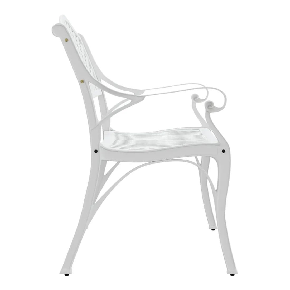 Le banc de jardin peut compléter le décor de tout jardin ou patio avec ses décorations ornées et son style romantique et sera tout simplement indispensable pendant les soirs d'été. Fabriqué en aluminium coulé de haute qualité, ce banc d'extérieur est résistant aux intempéries et très durable. Grâce aux pieds en fonte, ce banc de patio est extra robuste et résistant. Les volutes détaillées et le charmant motif floral ajoutent une touche élégante à n'importe quel jardin ou espace extérieur. Asseyez-vous et profitez de votre temps libre confortablement sur ce banc élégant ! Remarque : afin de prolonger la durée de vie des meubles d'extérieur, nous vous recommandons de les protéger avec une housse imperméable.