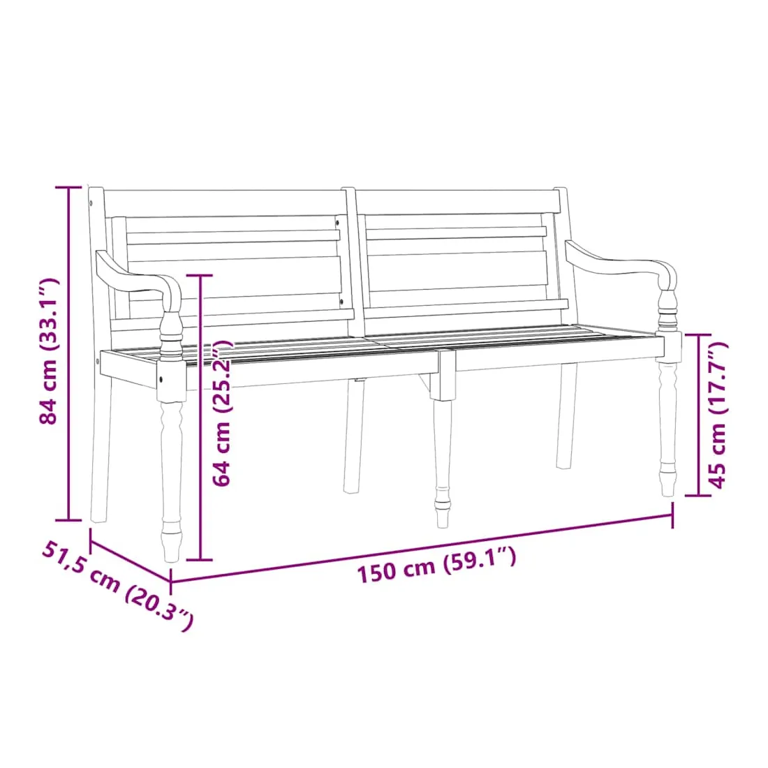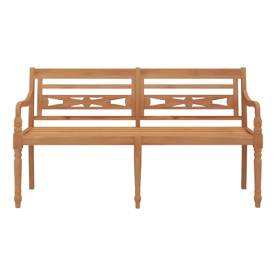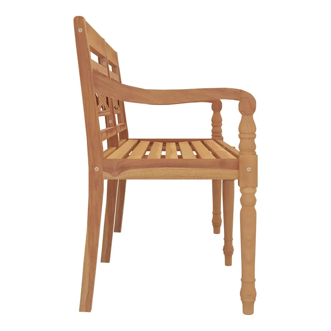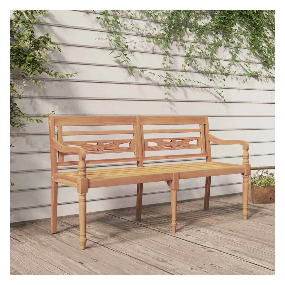 Ajoutez une touche d'élégance à votre espace de vie extérieur avec ce banc Batavia en bois ! Il présente des accoudoirs délicats et incurvés et des sculptures décoratives sur le dossier et les pieds. Bois de teck durable : fabriqué à partir de bois dur de teck extrêmement durable, ce banc de jardin a été chevronné, séché au four puis poncé finement pour lui donner un aspect très lisse. Le bois de teck est connu pour sa solidité exceptionnelle et sa résistance aux intempéries.Expérience d'assise confortable : le banc comprend des accoudoirs et un dossier, offrant une expérience d'assise confortable.Design élégant : le siège magnifiquement sculpté ajoutera une touche de charme rustique à votre jardin et convient parfaitement pour vous détendre à l'extérieur avec vos amis et votre famille. Remarque :Chaque produit est livré avec un manuel de montage dans la boîte pour un montage facile.Afin de prolonger la durée de vie de votre mobilier d'extérieur, nous vous recommandons de le protéger avec une housse imperméable.