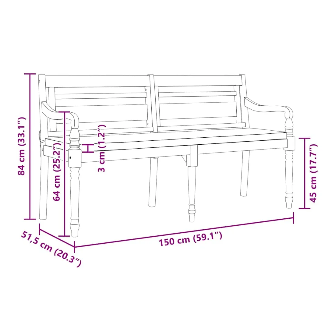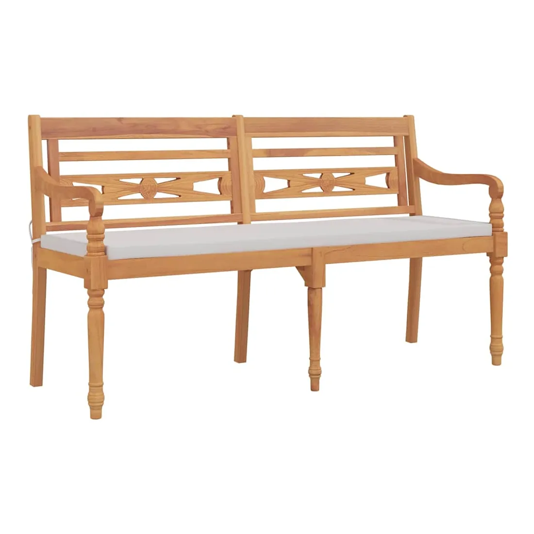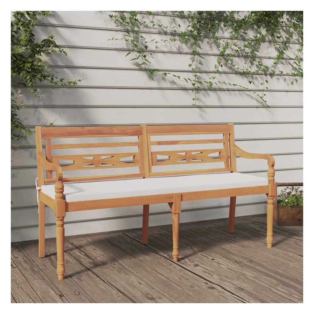 Ajoutez une touche d'élégance à votre espace de vie extérieur avec ce banc Batavia en bois ! Il présente des accoudoirs délicats et incurvés et des sculptures décoratives sur le dossier et les pieds. Bois de teck durable : fabriqué à partir de bois dur de teck extrêmement durable, ce banc de jardin a été chevronné, séché au four puis poncé finement pour lui donner un aspect très lisse. Le bois de teck est connu pour sa solidité exceptionnelle et sa résistance aux intempéries.Expérience d'assise confortable : le banc comprend des accoudoirs et un dossier, offrant une expérience d'assise confortable.Design élégant : le siège magnifiquement sculpté ajoutera une touche de charme rustique à votre jardin et convient parfaitement pour vous détendre à l'extérieur avec vos amis et votre famille. Remarque :Chaque produit est livré avec un manuel de montage dans la boîte pour un montage facile.Afin de prolonger la durée de vie de votre mobilier d'extérieur, nous vous recommandons de le protéger avec une housse imperméable.