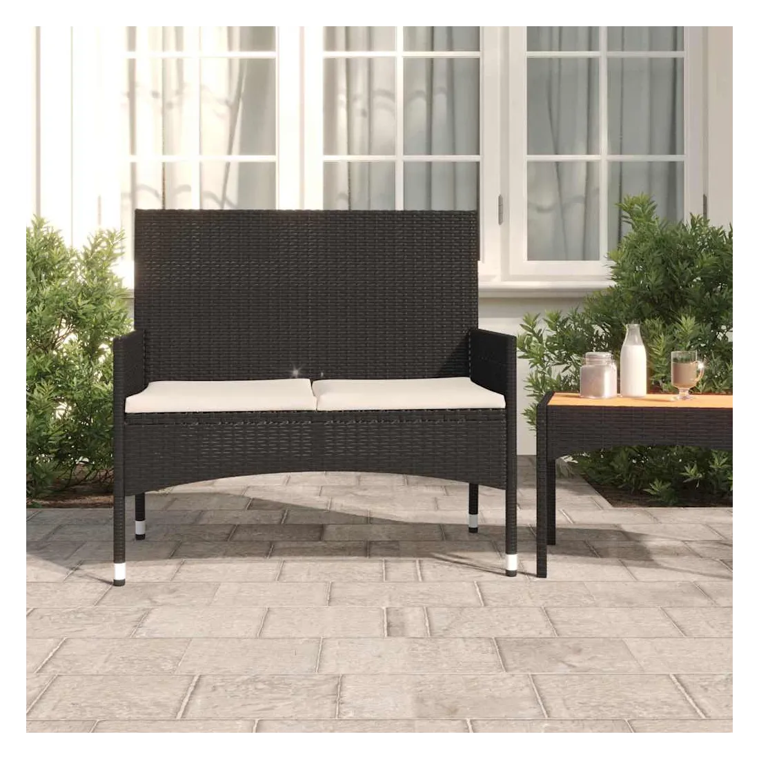 Profitez d'un moment agréable dans votre espace extérieur avec ce banc à 2 places ! C'est un complément parfait à votre jardin et à votre terrasse, créant une impression durable ! Matériau haut de gamme : la résine tressée est un matériau de résistance exceptionnelle et durable dans différentes conditions météorologiques.Cadre robuste : le cadre en acier enduit de poudre assure la robustesse et la stabilité du siège.Coussins moelleux : les coussins épais et amovibles du salon de jardin sont inclus pour offrir le plus grand confort d'assise.Accoudoirs et dossier confortables : vos bras et votre dos peuvent se reposer confortablement grâce aux accoudoirs et au dossier. Bon à savoir :Pour faciliter au maximum le montage, chaque produit est livré avec des instructions. Remarque :Pour que vos meubles d'extérieur restent beaux, nous vous recommandons de les protéger avec une housse imperméable.