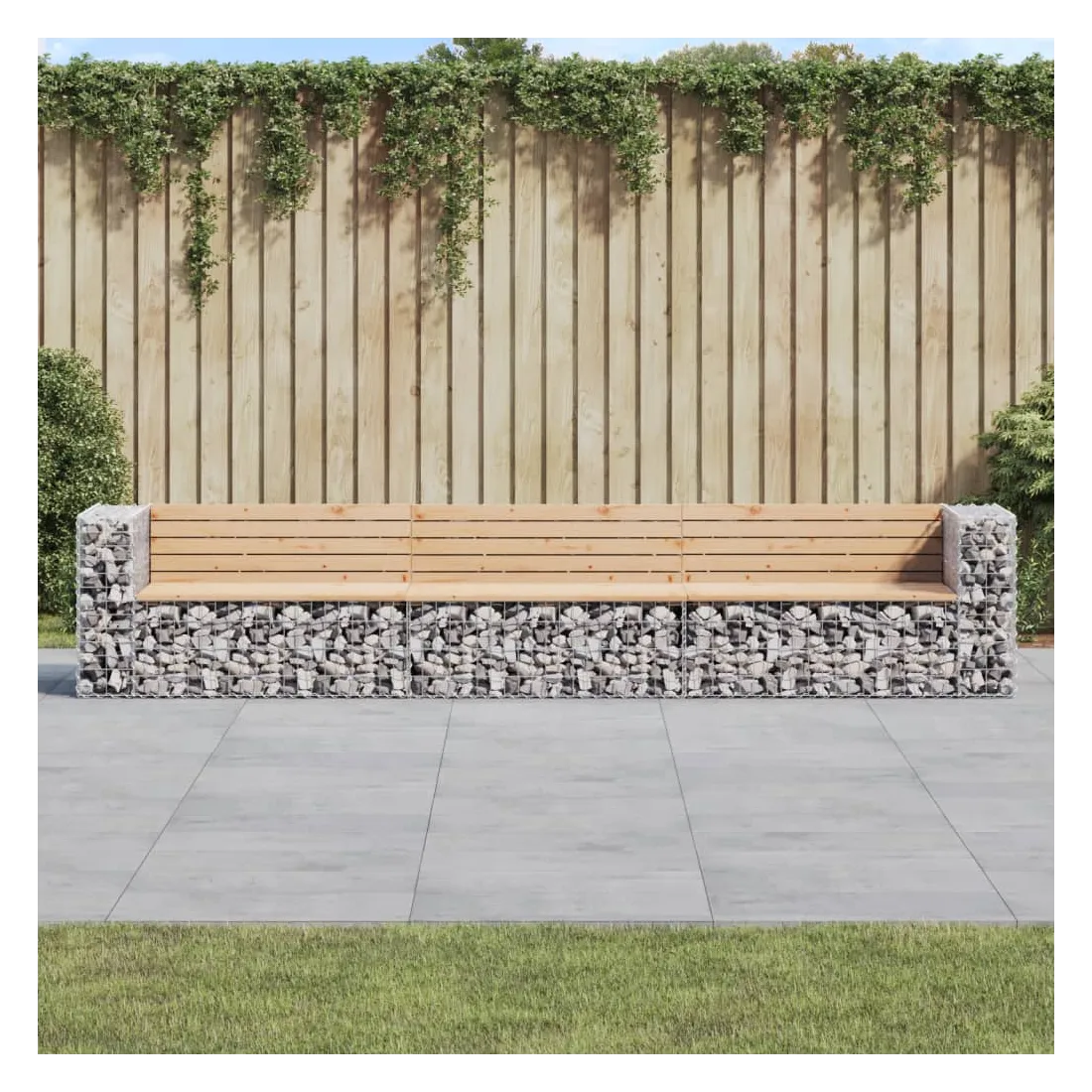 Créez votre propre espace extérieur avec ce banc de jardin ! Ce banc de jardin attirera tous les regards dans votre espace de vie extérieur. Pin massif : le dessus du siège de jardin est en pin massif pour plus de durabilité. Le bois de pin massif est un beau matériau naturel. Son grain est droit et les nœuds confèrent au matériau son aspect rustique caractéristique.Base robuste et stable : le banc d'extérieur est doté d'une base en gabion en acier galvanisé conçue pour être remplie de roches et de graviers pour plus de beauté. La grille maillée du panier de gabion est soudée avec des fils transversaux et longitudinaux à chaque intersection pour une stabilité supplémentaire.Design compact : le banc de jardin est parfait pour un espace limité grâce à son design étroit et compact.Large éventail d'utilisations : le banc de parc convient aux jardins, arrière-cours, terrasses, coins secrets et à bien d'autres endroits. Bon à savoir :Ce produit est assemblé par 2 bancs de jardin (angle) et un banc de jardin (central).