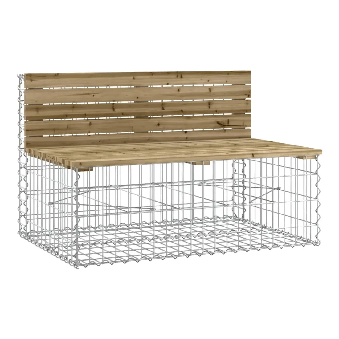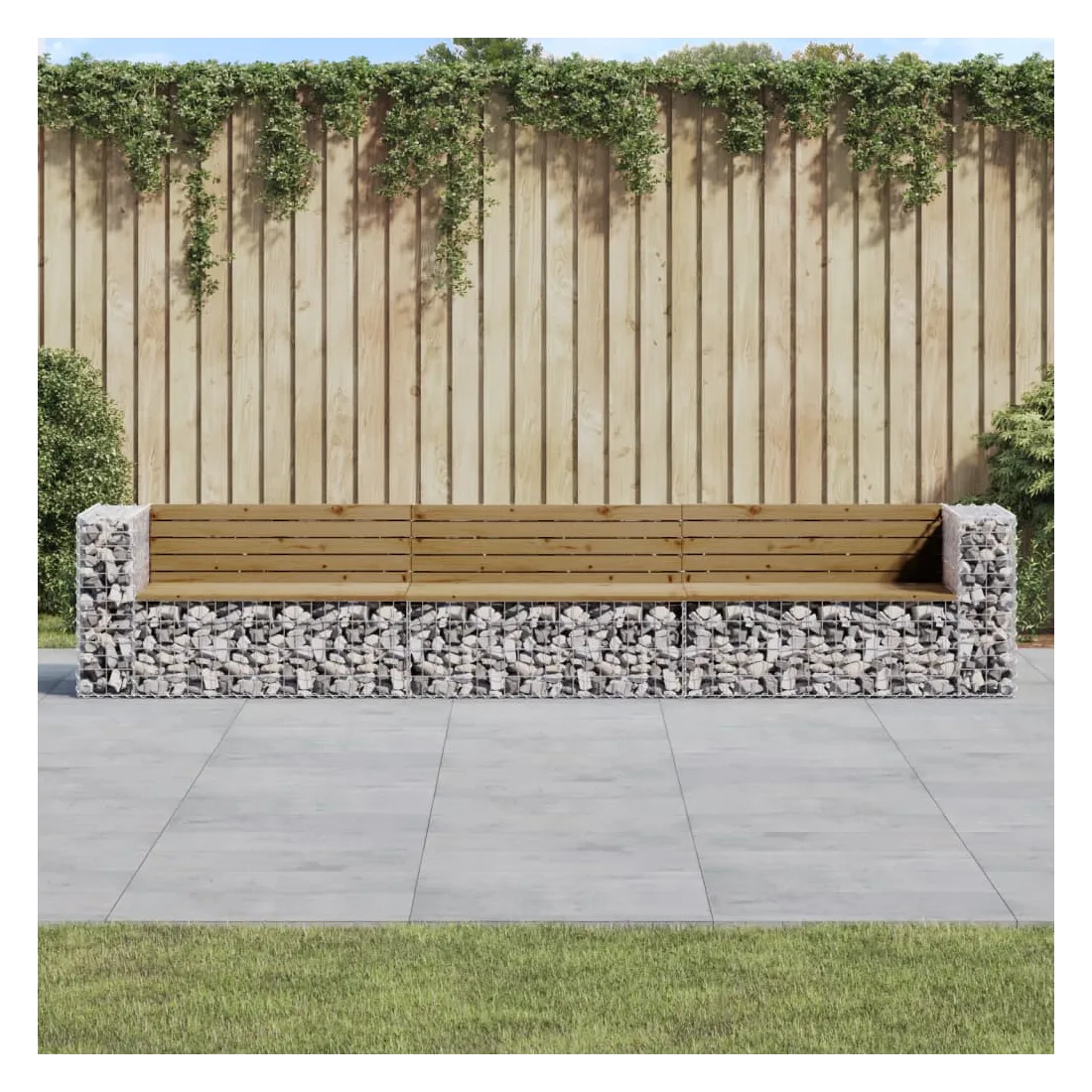 Créez votre propre espace extérieur avec ce banc de jardin ! Ce banc de jardin attirera tous les regards dans votre espace de vie extérieur. Bois imprégné : le dessus du siège de jardin est en bois de pin imprégné sous vide pour plus de durabilité. Le bois de pin massif est un beau matériau naturel. Son grain est droit et les nœuds confèrent au matériau son aspect rustique caractéristique. L'imprégnation est un processus de conservation réalisé à l'aide d'autoclaves. Le traitement sous pression augmente la résistance à la pourriture et aux intempéries.Base robuste et stable : le banc d'extérieur est doté d'une base en gabion en acier galvanisé conçue pour être remplie de roches et de graviers pour plus de beauté. La grille maillée du panier de gabion est soudée avec des fils transversaux et longitudinaux à chaque intersection pour une stabilité supplémentaire.Design compact : le banc de jardin est parfait pour un espace limité grâce à son design étroit et compact.Large éventail d'utilisations : le banc de parc convient aux jardins, arrière-cours, terrasses, coins secrets et à bien d'autres endroits. Bon à savoir :Ce produit est assemblé par 2 bancs de jardin (angle) et un banc de jardin (central).