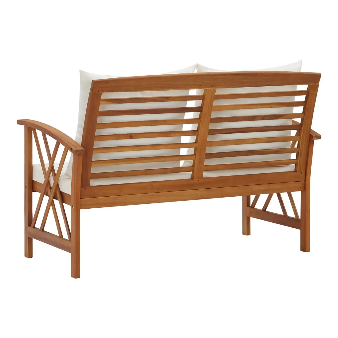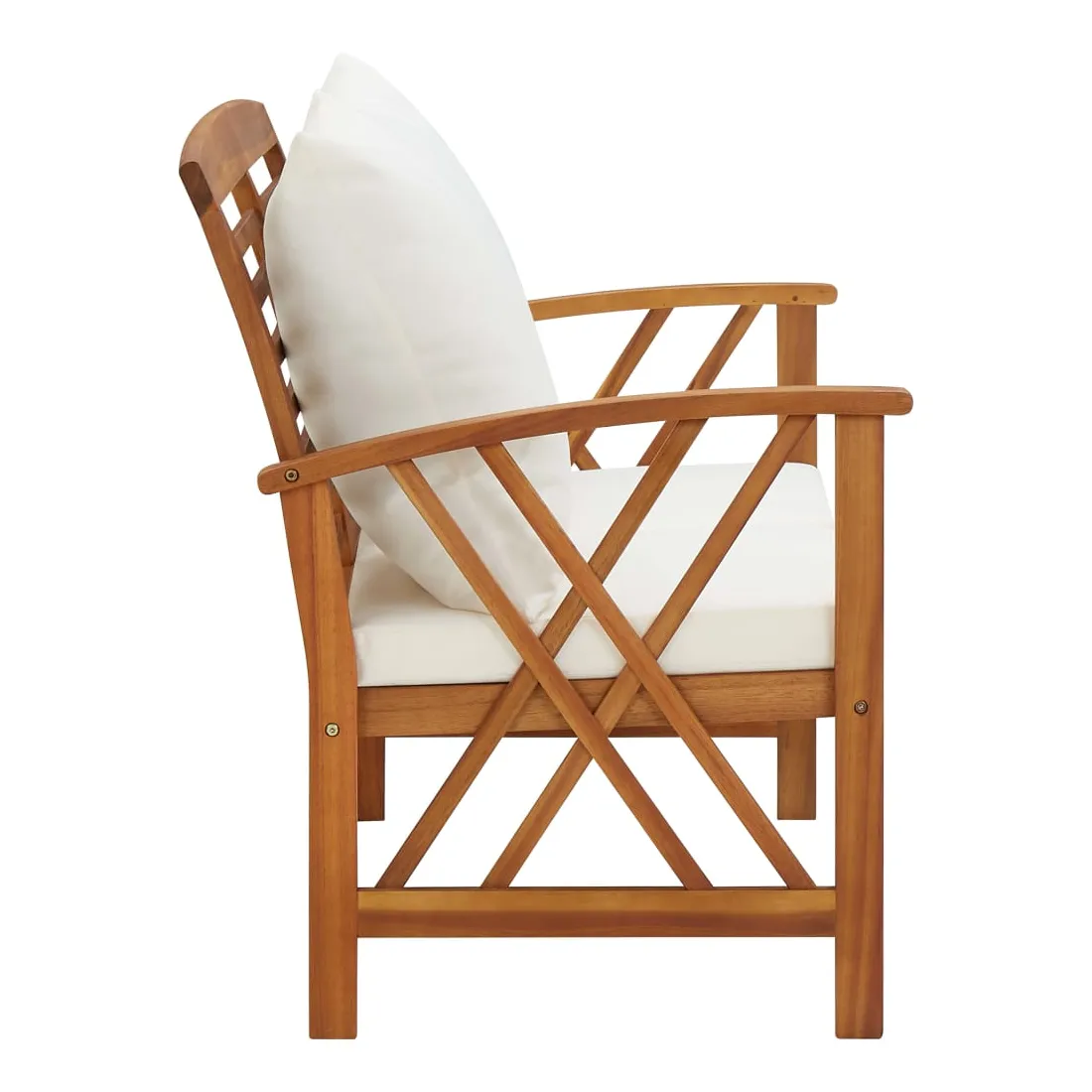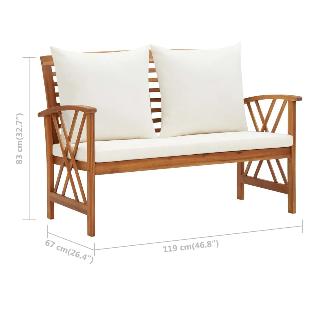 Ce banc de jardin simple avec coussins est parfait pour profiter du beau temps et vous détendre dans votre jardin ou sur le patio. Ce banc d'extérieur est fait de bois d’acacia massif, un bois dur avec des grains denses. Ce banc au design magnifique est stable, durable et attire l'attention. La surface à finition à l'huile est facile à nettoyer avec un chiffon humide et convient à une utilisation dehors. Les coussins de siège et les oreillers de dossier fournis offrent un confort optimal. Le banc en bois en fait un endroit idéal pour vous détendre, discuter avec les membres de votre famille dans votre jardin, sur le patio ou le balcon.