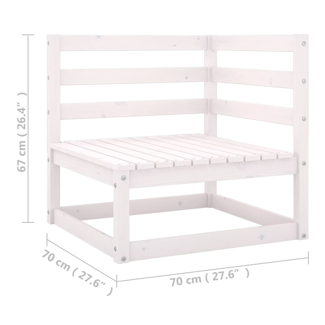• Dimensions du canapé d'angle/central (chacun) : 70 x 70 x 67 cm (l x P x H)