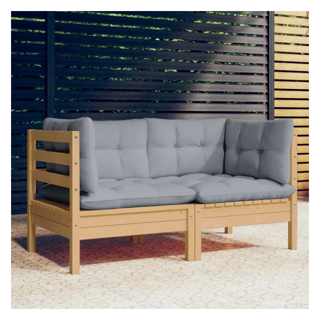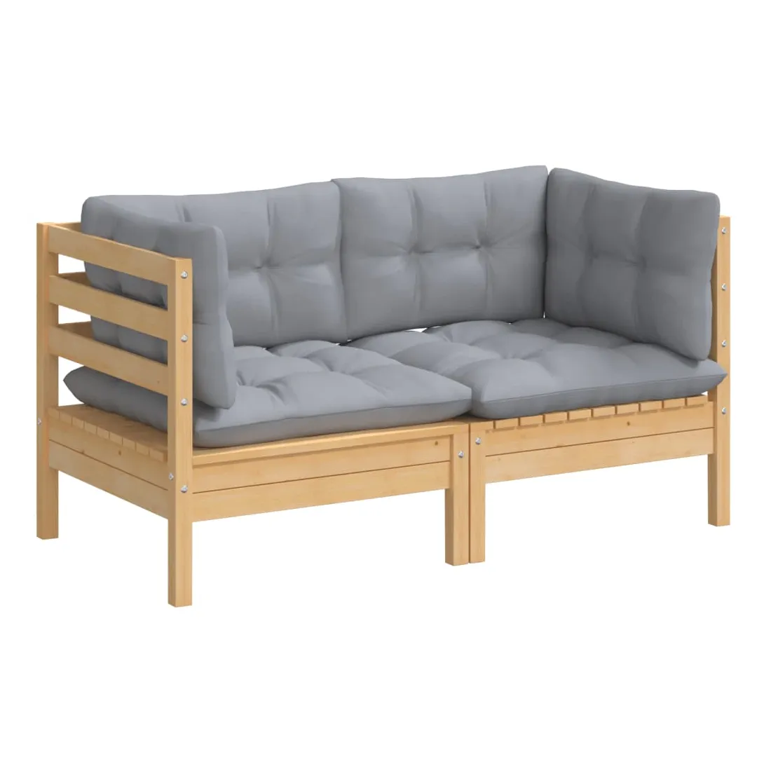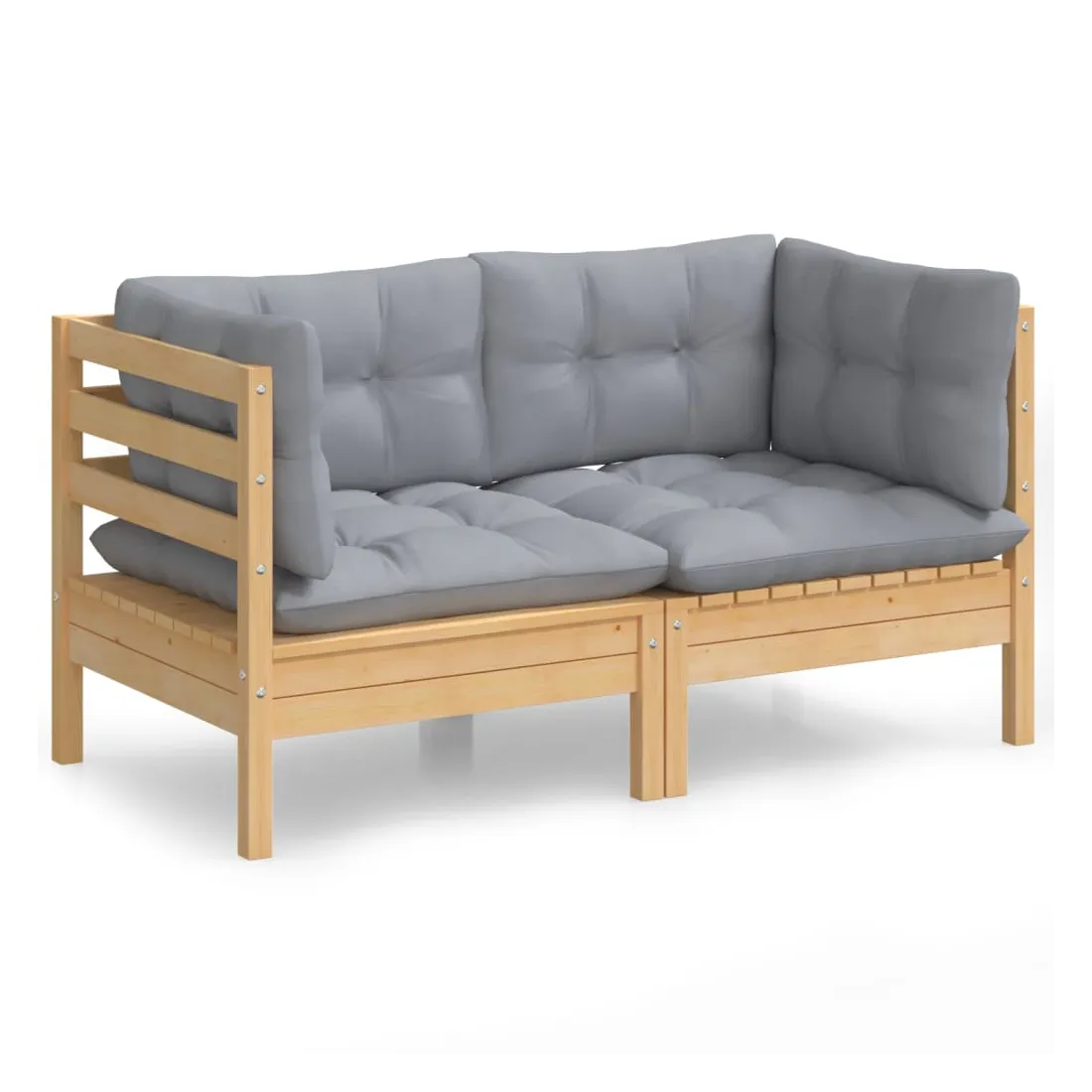 Canapé 2 places de jardin et coussins gris Bois de pin solide