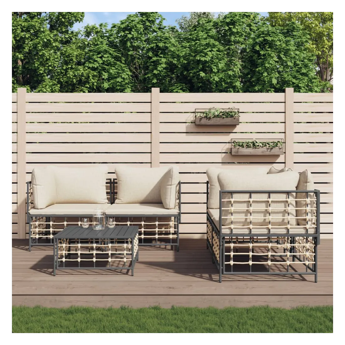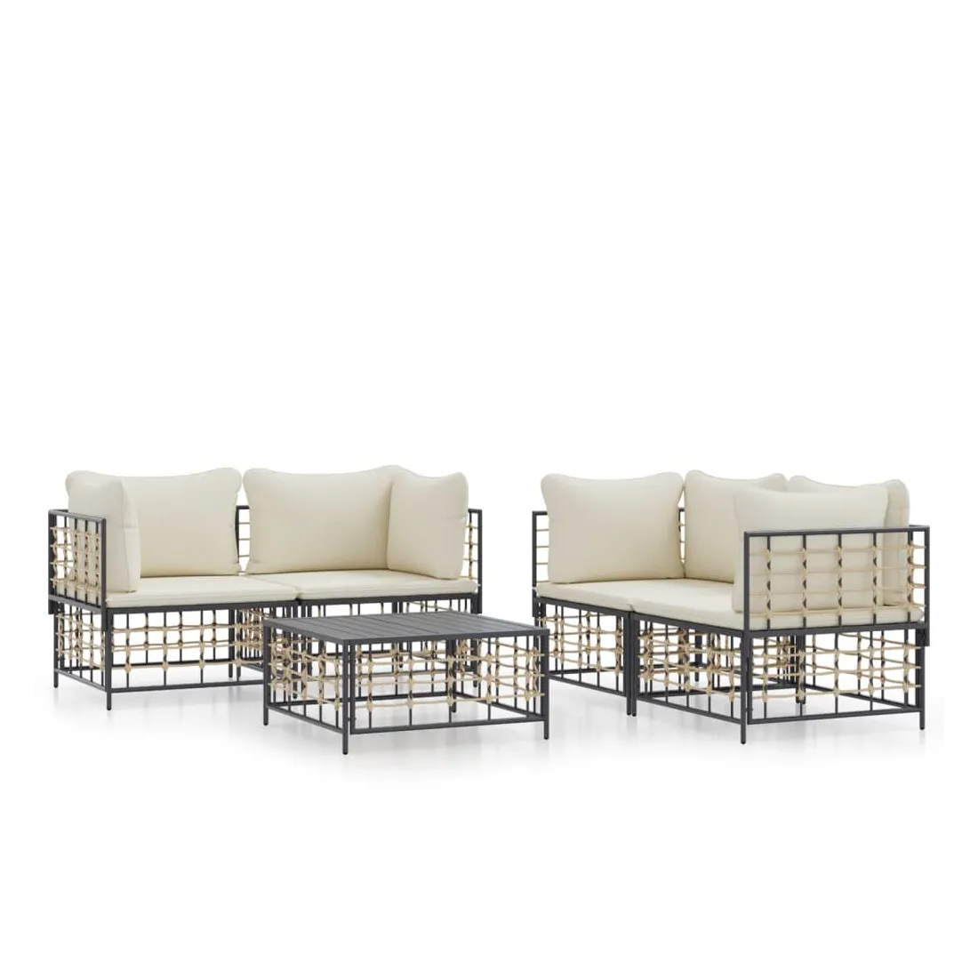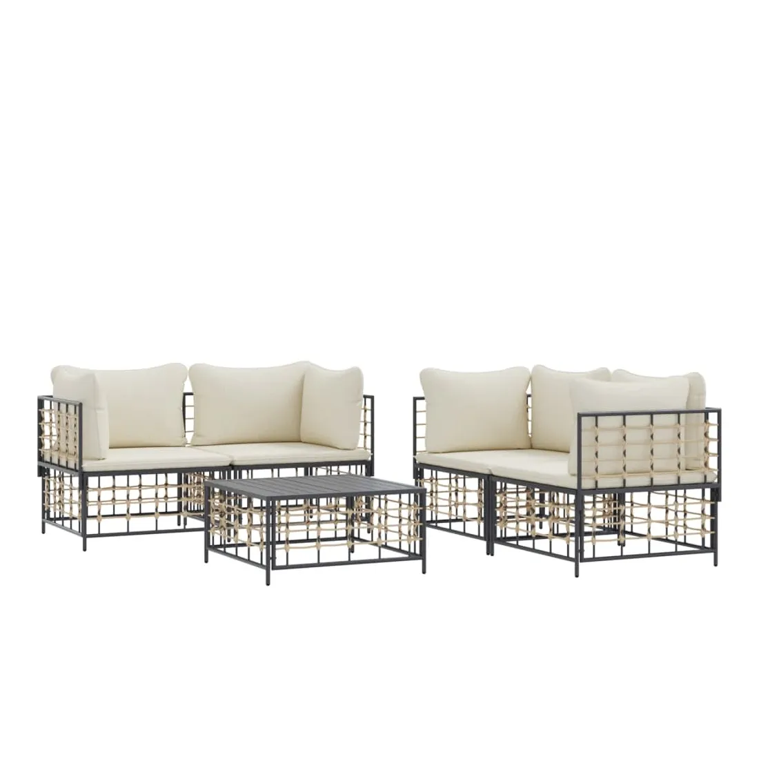 Profitez d'un moment de café confortable dans votre espace extérieur avec cet ensemble de salon de jardin ! C'est un complément parfait à votre jardin et à votre terrasse, créant une impression durable ! Matériau résistant aux intempéries : le poly rotin est résistant aux intempéries et facile à nettoyer. Il reste beau à l'extérieur pendant une longue période de temps. Il est plus économique que d'autres matériaux, tout en offrant une excellente qualité, une commodité et un aspect esthétique.Cadre robuste et stable : le cadre en acier de l'ensemble de salon assure robustesse et stabilité.Expérience d'assise confortable : le dossier ajoute un confort d'assise supplémentaire pour l'ensemble de salon. De plus, les coussins bien rembourrés offrent un confort pour votre temps d'assise.Dessus de table robuste : le dessus de table robuste de la table basse est parfait pour placer des repas, des boissons, des vases, des bols de fruits ou d'autres objets décoratifs.Conception modulaire : l'ensemble de salon de jardin est flexible et facile à déplacer, vous pouvez donc le combiner avec d'autres segments modulaires de la boutique en ligne pour créer vos propres configurations personnelles de salon de jardin ! Remarque :Pour que vos meubles d'extérieur restent beaux, nous vous recommandons de les protéger avec une housse imperméable.
