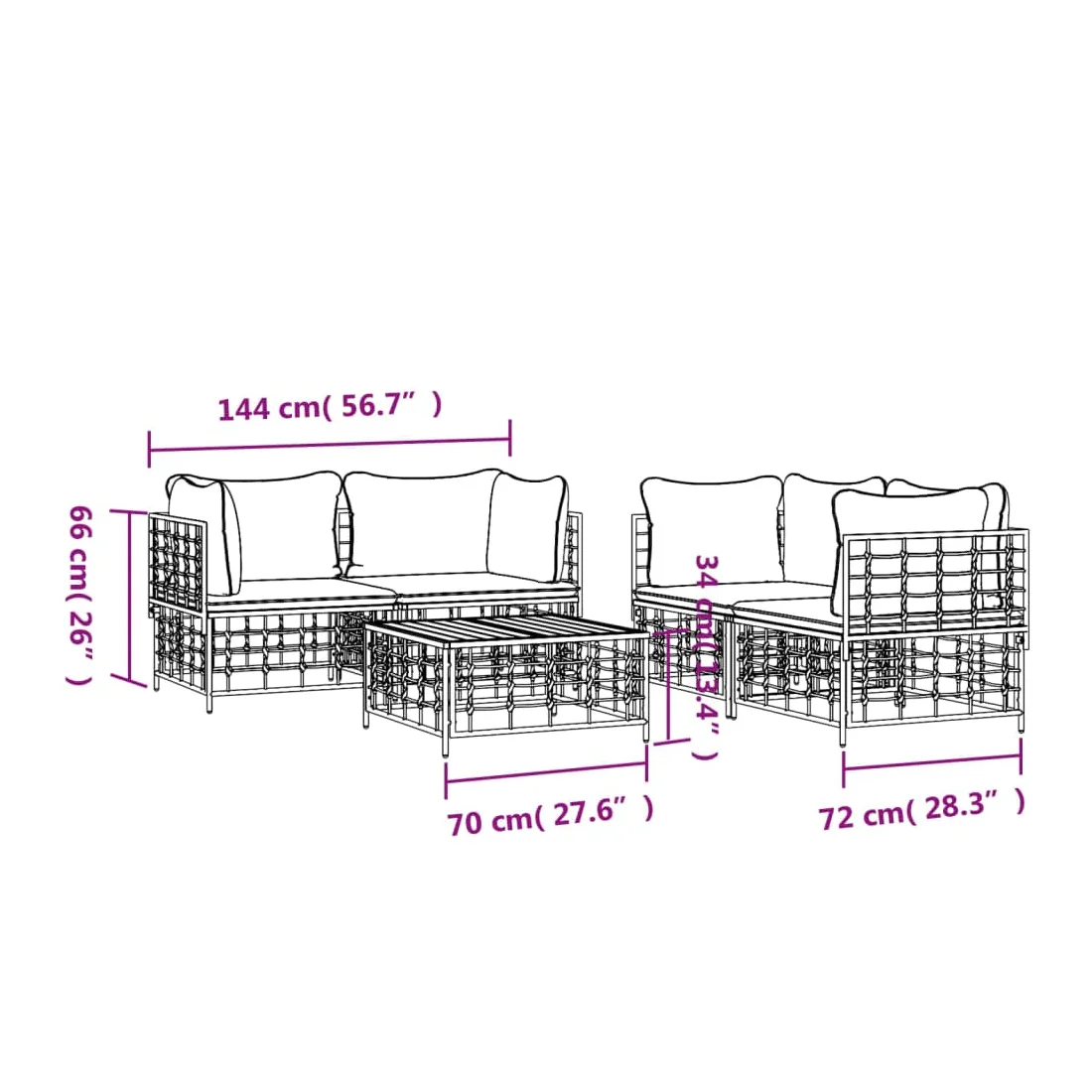 - Dimensions : 70 x 70 x 34 cm (l x P x H)