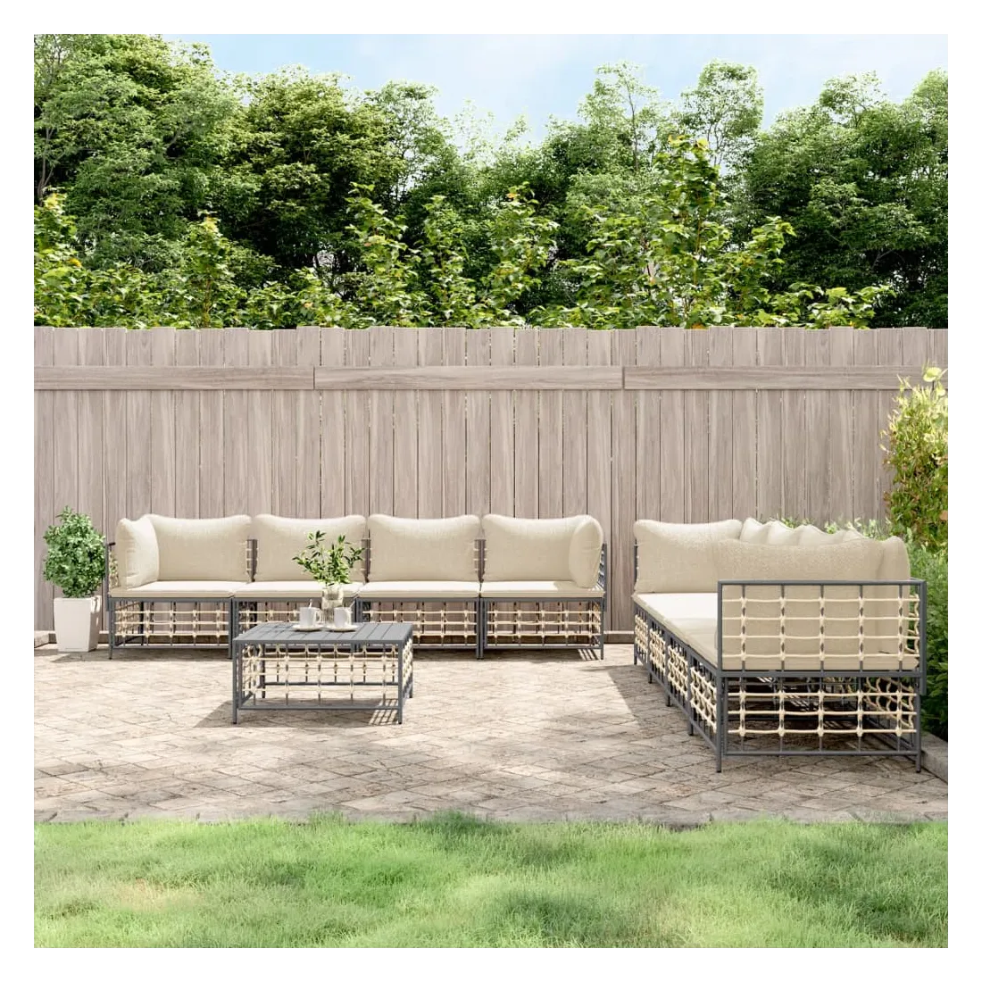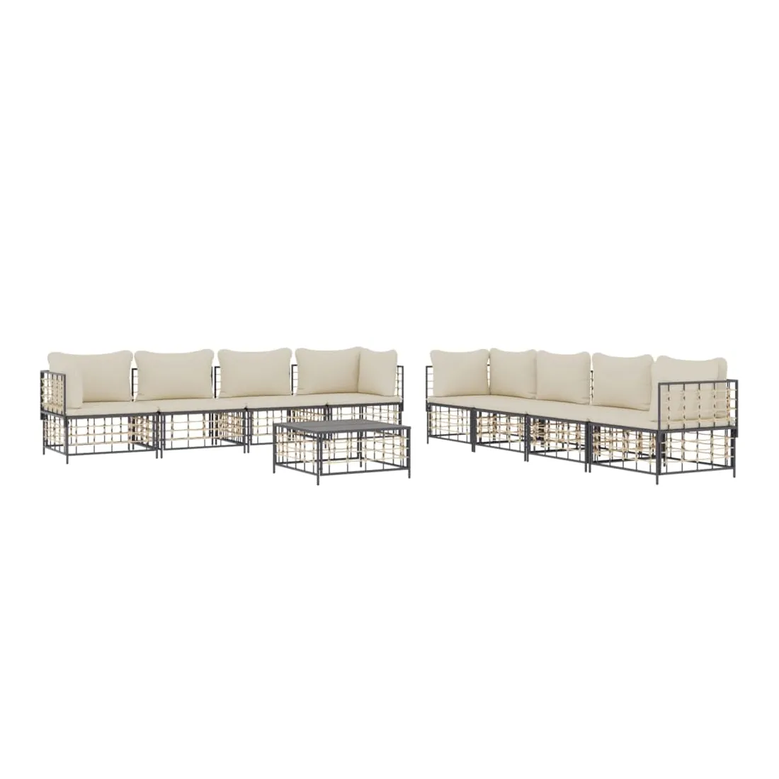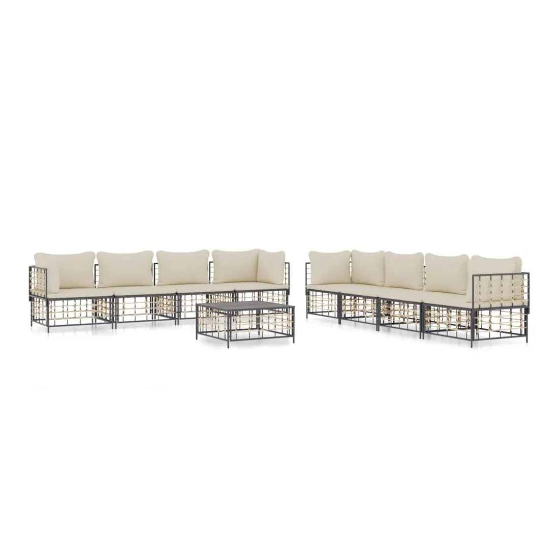 Salon de jardin 9 pcs avec coussins anthracite résine tressée