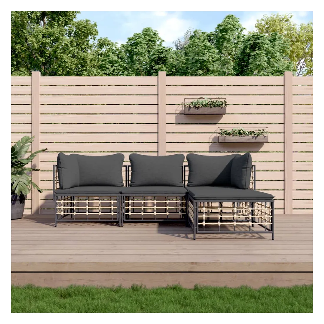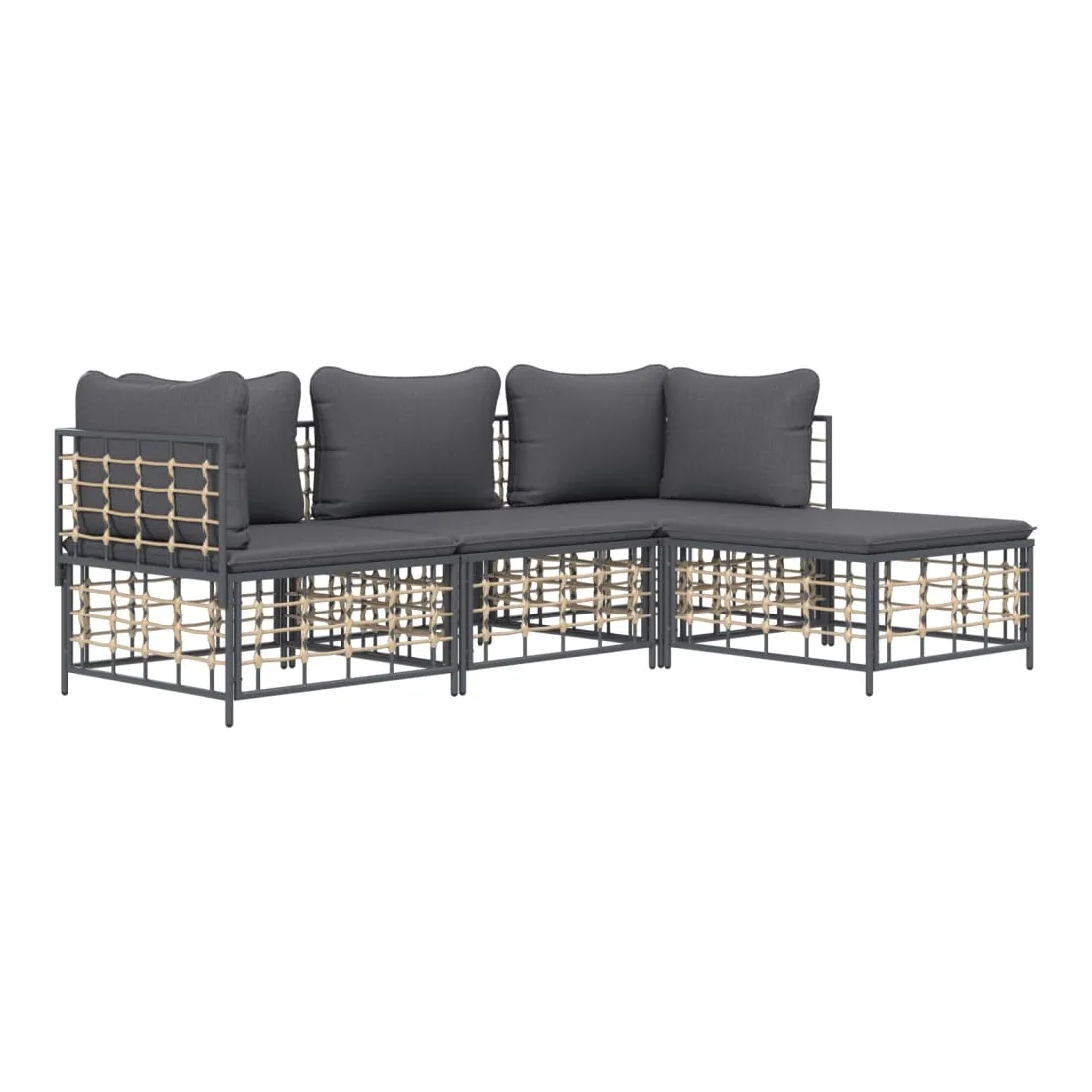 Profitez d'un moment de café confortable dans votre espace extérieur avec cet ensemble de salon de jardin ! C'est un complément parfait à votre jardin et à votre terrasse, créant une impression durable ! Matériau résistant aux intempéries : le poly rotin est résistant aux intempéries et facile à nettoyer. Il reste beau à l'extérieur pendant une longue période de temps. Il est plus économique que d'autres matériaux, tout en offrant une excellente qualité, une commodité et un aspect esthétique.Cadre robuste et stable : le cadre en acier de l'ensemble de salon assure robustesse et stabilité.Expérience d'assise confortable : le dossier ajoute un confort d'assise supplémentaire pour l'ensemble de salon. De plus, les coussins bien rembourrés offrent un confort pour votre temps d'assise.Conception modulaire : l'ensemble de salon de jardin est flexible et facile à déplacer, vous pouvez donc le combiner avec d'autres segments modulaires de la boutique en ligne pour créer vos propres configurations personnelles de salon de jardin ! Remarque :Pour que vos meubles d'extérieur restent beaux, nous vous recommandons de les protéger avec une housse imperméable.