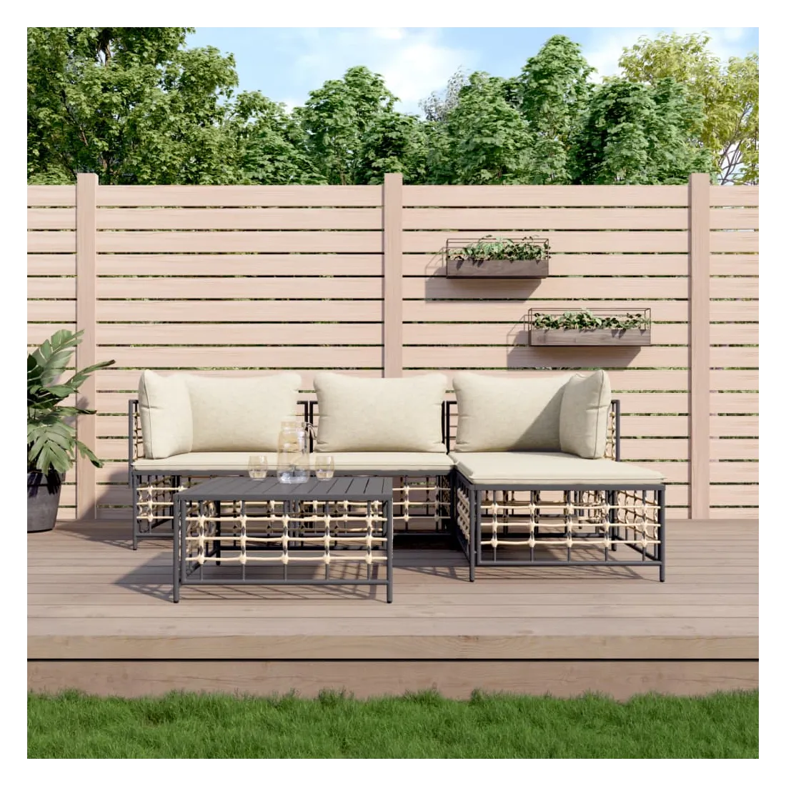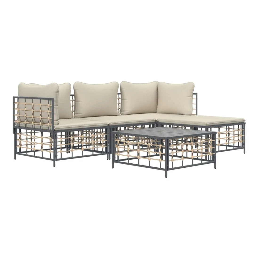 Profitez d'un moment de café confortable dans votre espace extérieur avec cet ensemble de salon de jardin ! C'est un complément parfait à votre jardin et à votre terrasse, créant une impression durable ! Matériau résistant aux intempéries : le poly rotin est résistant aux intempéries et facile à nettoyer. Il reste beau à l'extérieur pendant une longue période de temps. Il est plus économique que d'autres matériaux, tout en offrant une excellente qualité, une commodité et un aspect esthétique.Cadre robuste et stable : le cadre en acier de l'ensemble de salon assure robustesse et stabilité.Expérience d'assise confortable : le dossier ajoute un confort d'assise supplémentaire pour l'ensemble de salon. De plus, les coussins bien rembourrés offrent un confort pour votre temps d'assise.Dessus de table robuste : le dessus de table robuste de la table basse est parfait pour placer des repas, des boissons, des vases, des bols de fruits ou d'autres objets décoratifs.Conception modulaire : l'ensemble de salon de jardin est flexible et facile à déplacer, vous pouvez donc le combiner avec d'autres segments modulaires de la boutique en ligne pour créer vos propres configurations personnelles de salon de jardin ! Remarque :Pour que vos meubles d'extérieur restent beaux, nous vous recommandons de les protéger avec une housse imperméable.