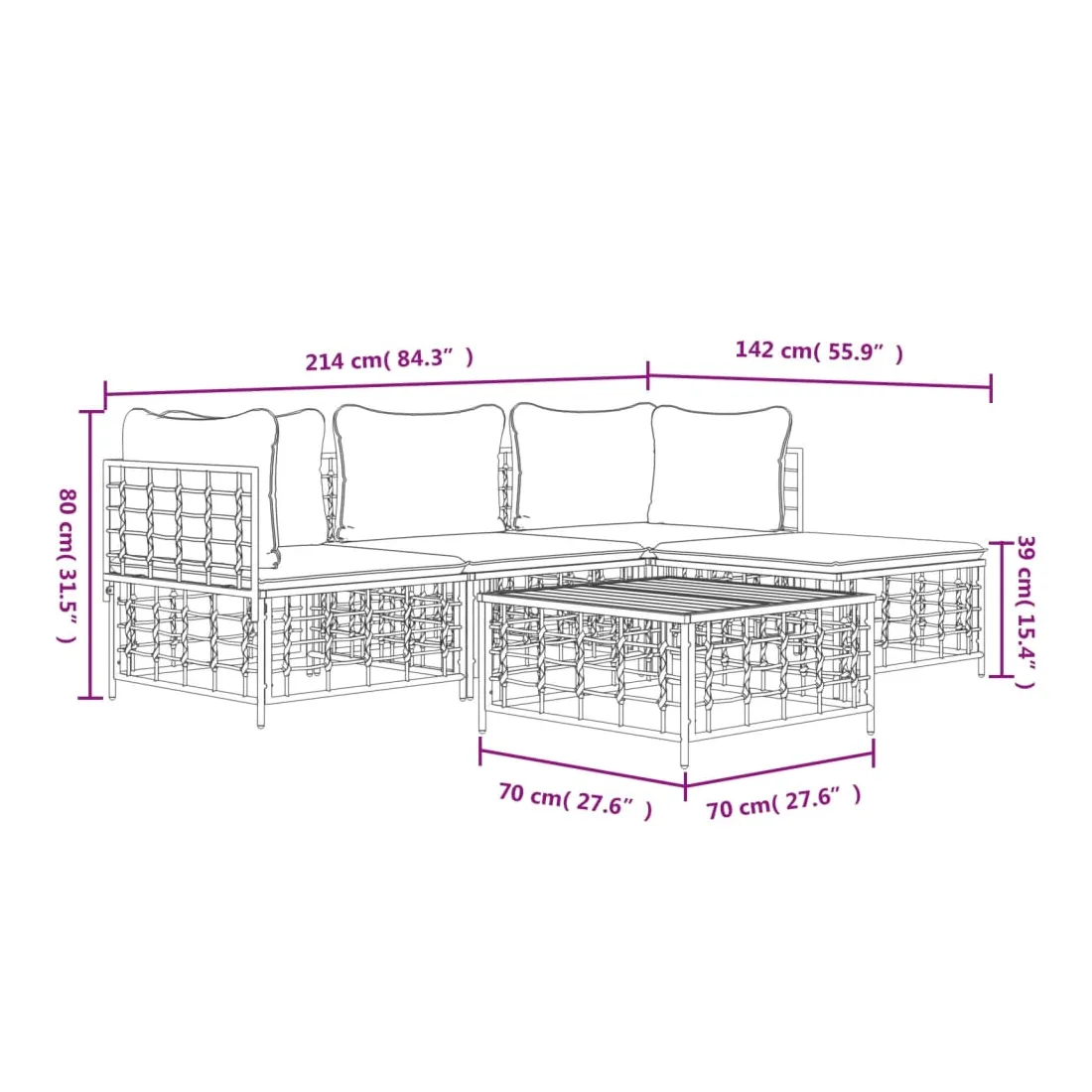 - Dimensions : 70 x 70 x 34 cm (l x P x H)