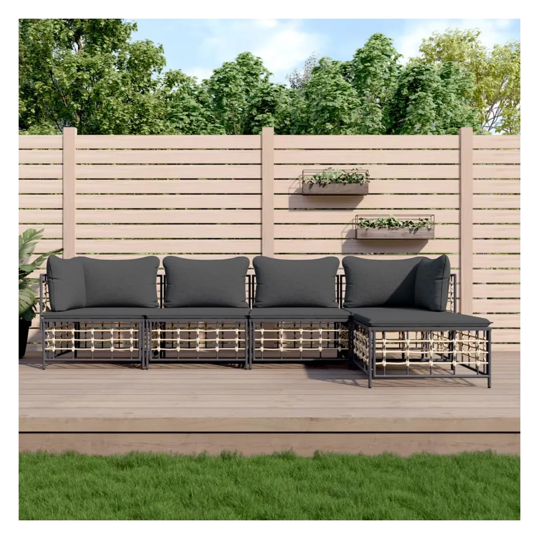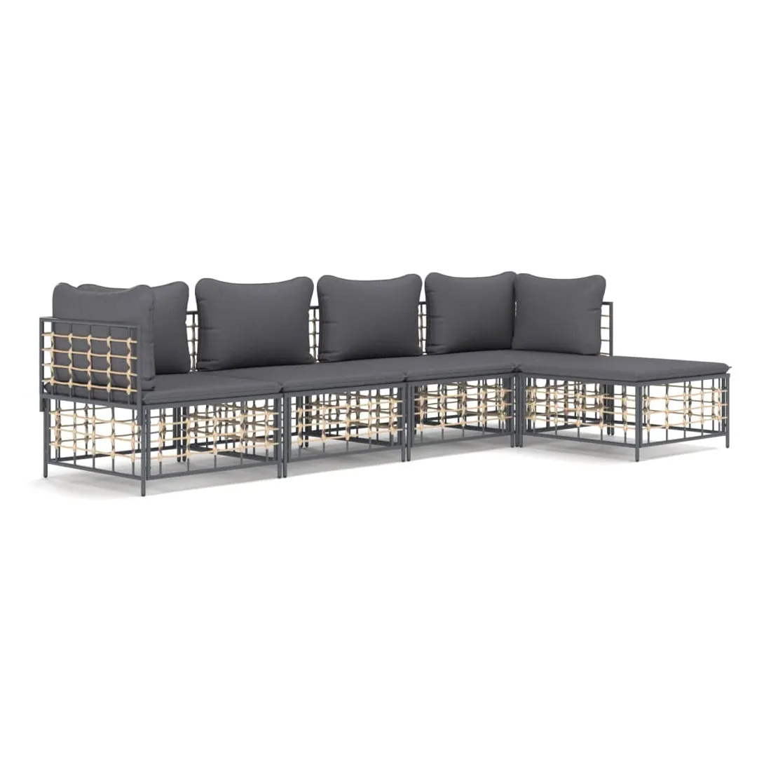 Profitez d'un moment de café confortable dans votre espace extérieur avec cet ensemble de salon de jardin ! C'est un complément parfait à votre jardin et à votre terrasse, créant une impression durable ! Matériau résistant aux intempéries : le poly rotin est résistant aux intempéries et facile à nettoyer. Il reste beau à l'extérieur pendant une longue période de temps. Il est plus économique que d'autres matériaux, tout en offrant une excellente qualité, une commodité et un aspect esthétique.Cadre robuste et stable : le cadre en acier de l'ensemble de salon assure robustesse et stabilité.Expérience d'assise confortable : le dossier ajoute un confort d'assise supplémentaire pour l'ensemble de salon. De plus, les coussins bien rembourrés offrent un confort pour votre temps d'assise.Conception modulaire : l'ensemble de salon de jardin est flexible et facile à déplacer, vous pouvez donc le combiner avec d'autres segments modulaires de la boutique en ligne pour créer vos propres configurations personnelles de salon de jardin ! Remarque :Pour que vos meubles d'extérieur restent beaux, nous vous recommandons de les protéger avec une housse imperméable.
