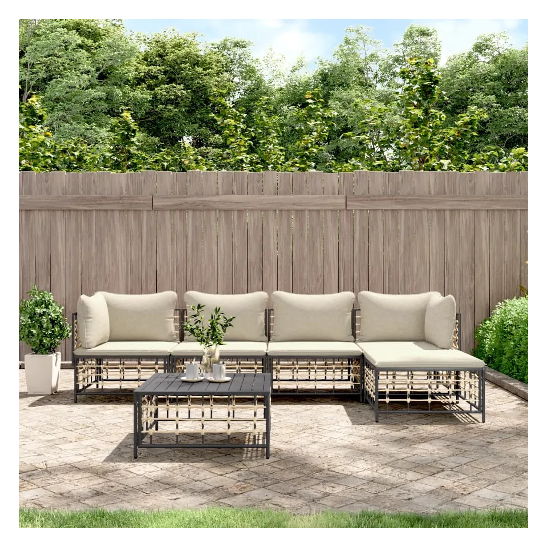 Profitez d'un moment de café confortable dans votre espace extérieur avec cet ensemble de salon de jardin ! C'est un complément parfait à votre jardin et à votre terrasse, créant une impression durable ! Matériau résistant aux intempéries : le poly rotin est résistant aux intempéries et facile à nettoyer. Il reste beau à l'extérieur pendant une longue période de temps. Il est plus économique que d'autres matériaux, tout en offrant une excellente qualité, une commodité et un aspect esthétique.Cadre robuste et stable : le cadre en acier de l'ensemble de salon assure robustesse et stabilité.Expérience d'assise confortable : le dossier ajoute un confort d'assise supplémentaire pour l'ensemble de salon. De plus, les coussins bien rembourrés offrent un confort pour votre temps d'assise.Dessus de table robuste : le dessus de table robuste de la table basse est parfait pour placer des repas, des boissons, des vases, des bols de fruits ou d'autres objets décoratifs.Conception modulaire : l'ensemble de salon de jardin est flexible et facile à déplacer, vous pouvez donc le combiner avec d'autres segments modulaires de la boutique en ligne pour créer vos propres configurations personnelles de salon de jardin ! Remarque :Pour que vos meubles d'extérieur restent beaux, nous vous recommandons de les protéger avec une housse imperméable.