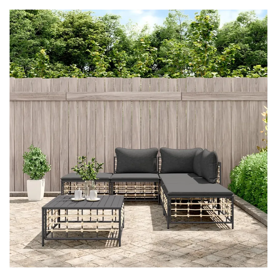 Profitez d'un moment de café confortable dans votre espace extérieur avec cet ensemble de salon de jardin ! C'est un complément parfait à votre jardin et à votre terrasse, créant une impression durable ! Matériau résistant aux intempéries : le poly rotin est résistant aux intempéries et facile à nettoyer. Il reste beau à l'extérieur pendant une longue période de temps. Il est plus économique que d'autres matériaux, tout en offrant une excellente qualité, une commodité et un aspect esthétique.Cadre robuste et stable : le cadre en acier de l'ensemble de salon assure robustesse et stabilité.Expérience d'assise confortable : le dossier ajoute un confort d'assise supplémentaire pour l'ensemble de salon. De plus, les coussins bien rembourrés offrent un confort pour votre temps d'assise.Dessus de table robuste : le dessus de table robuste de la table basse est parfait pour placer des repas, des boissons, des vases, des bols de fruits ou d'autres objets décoratifs.Conception modulaire : l'ensemble de salon de jardin est flexible et facile à déplacer, vous pouvez donc le combiner avec d'autres segments modulaires de la boutique en ligne pour créer vos propres configurations personnelles de salon de jardin ! Remarque :Pour que vos meubles d'extérieur restent beaux, nous vous recommandons de les protéger avec une housse imperméable.