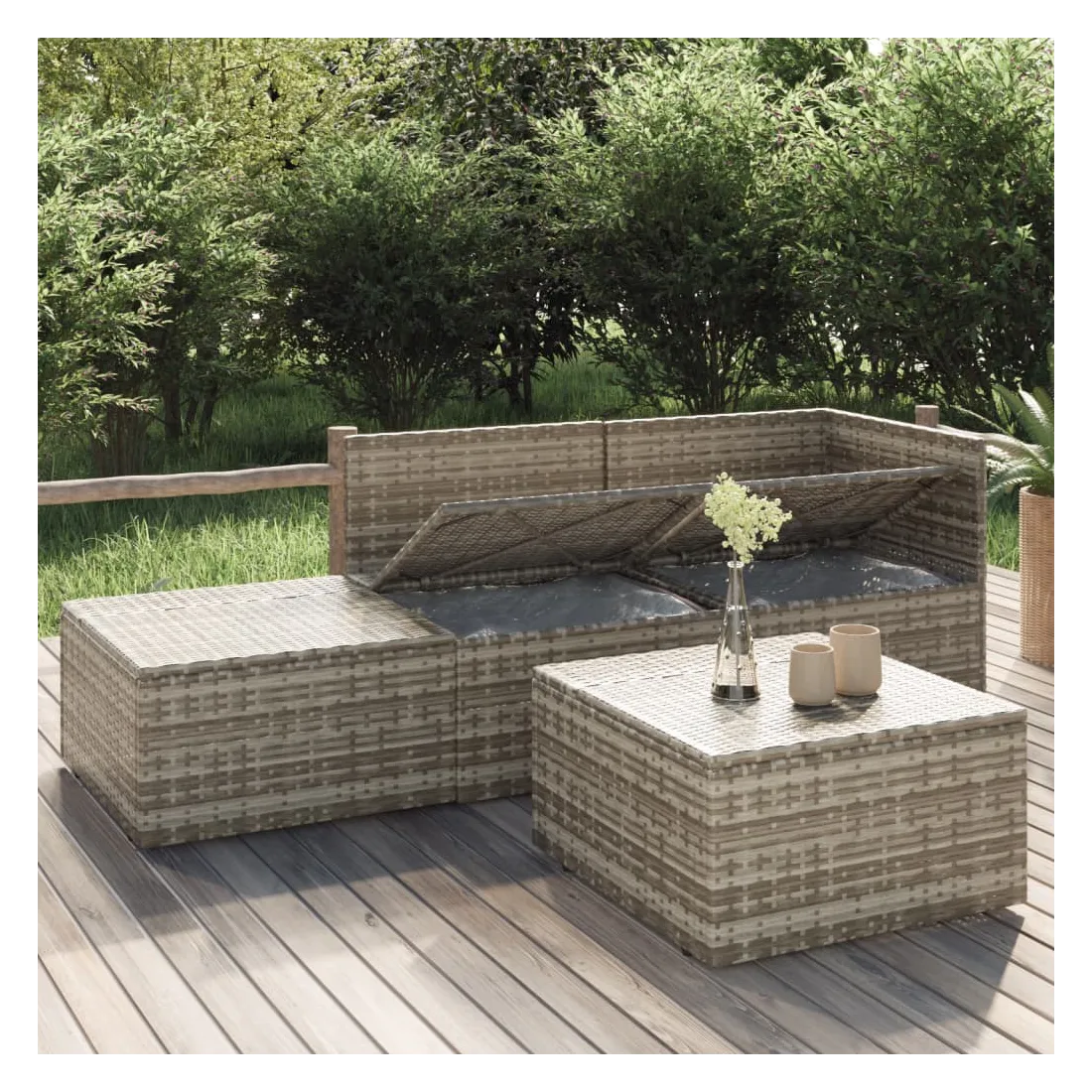 Cet ensemble de salon de jardin tendance, au design élégant et contemporain, est un excellent choix pour manger ou vous détendre dans votre jardin. Matériau durable : la résine tressée est un matériau de résistance exceptionnelle et durable dans différentes conditions météorologiques. Elle nécessite peu d'entretien. Le cadre en acier assure la solidité et la stabilité.Expérience de siège confortable : des coussins et des oreillers supplémentaires sont inclus pour votre confort.Grand espace de rangement : l'espace de rangement facilite l'organisation des articles. Il convient au rangement de vos coussins, oreillers, couvertures, jouets et autres objets.Sac imperméable : le sac imperméable doté d'une couverture, d'une fermeture à glissière et d'attaches auto-agrippantes peut garder vos affaires en sécurité et protéger vos articles de l'humidité. Remarque :Afin de prolonger la durée de vie de votre mobilier d'extérieur, nous vous recommandons de le protéger avec une housse imperméable.Chaque produit est livré avec un manuel de montage dans la boîte pour un montage facile.