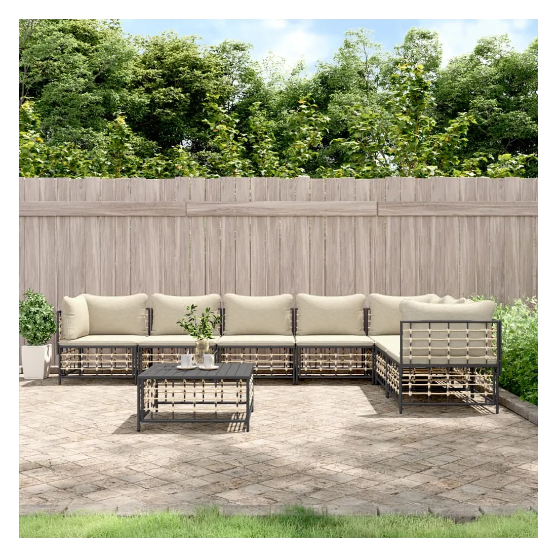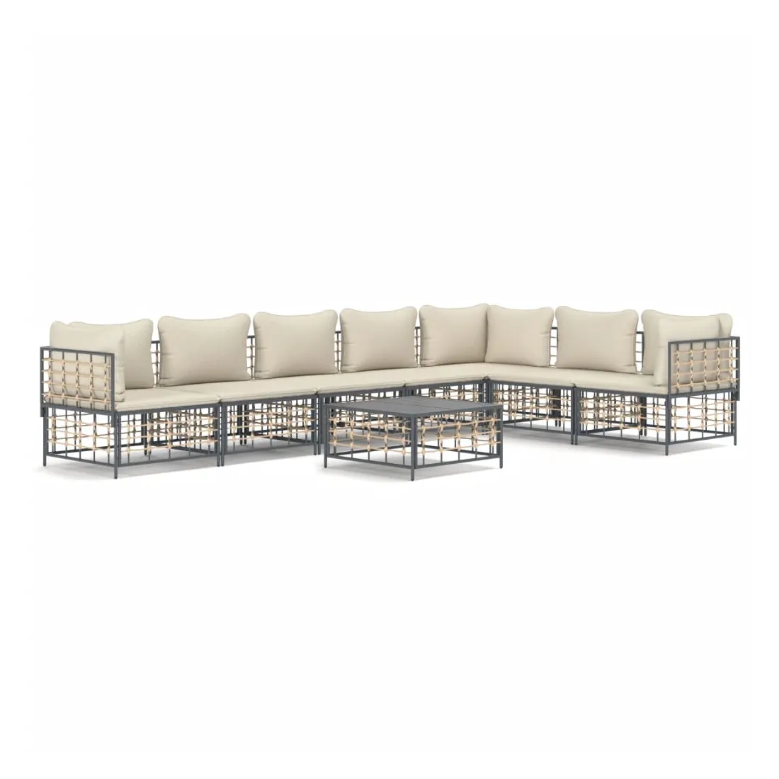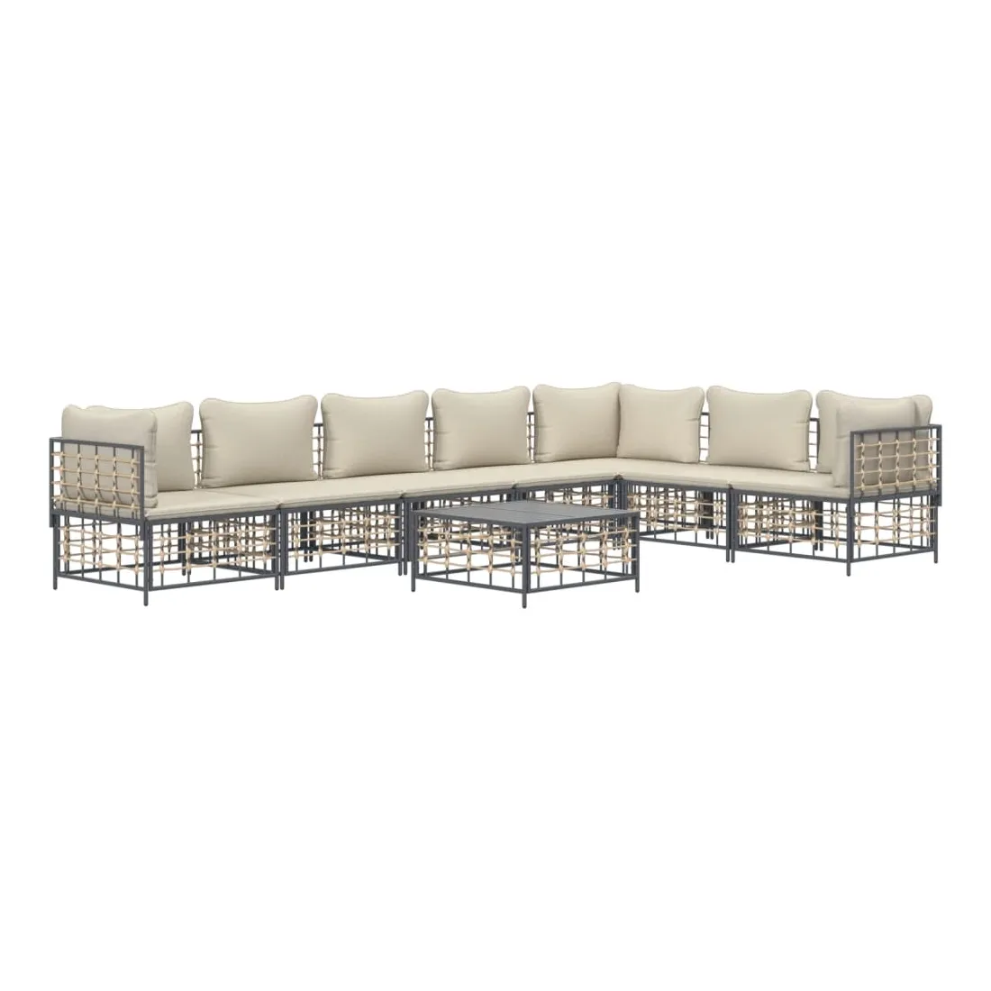 Salon de jardin 8 pcs avec coussins anthracite résine tressée