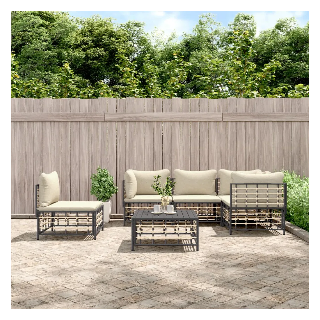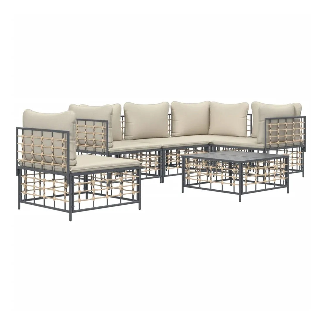 Profitez d'un moment de café confortable dans votre espace extérieur avec cet ensemble de salon de jardin ! C'est un complément parfait à votre jardin et à votre terrasse, créant une impression durable ! Matériau résistant aux intempéries : le poly rotin est résistant aux intempéries et facile à nettoyer. Il reste beau à l'extérieur pendant une longue période de temps. Il est plus économique que d'autres matériaux, tout en offrant une excellente qualité, une commodité et un aspect esthétique.Cadre robuste et stable : le cadre en acier de l'ensemble de salon assure robustesse et stabilité.Expérience d'assise confortable : le dossier ajoute un confort d'assise supplémentaire pour l'ensemble de salon. De plus, les coussins bien rembourrés offrent un confort pour votre temps d'assise.Dessus de table robuste : le dessus de table robuste de la table basse est parfait pour placer des repas, des boissons, des vases, des bols de fruits ou d'autres objets décoratifs.Conception modulaire : l'ensemble de salon de jardin est flexible et facile à déplacer, vous pouvez donc le combiner avec d'autres segments modulaires de la boutique en ligne pour créer vos propres configurations personnelles de salon de jardin ! Remarque :Pour que vos meubles d'extérieur restent beaux, nous vous recommandons de les protéger avec une housse imperméable.