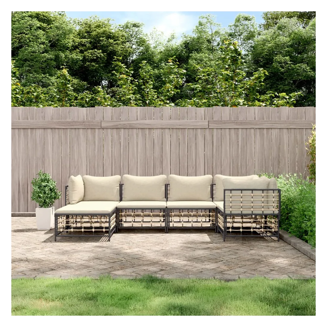 Profitez d'un moment de café confortable dans votre espace extérieur avec cet ensemble de salon de jardin ! C'est un complément parfait à votre jardin et à votre terrasse, créant une impression durable ! Matériau résistant aux intempéries : le poly rotin est résistant aux intempéries et facile à nettoyer. Il reste beau à l'extérieur pendant une longue période de temps. Il est plus économique que d'autres matériaux, tout en offrant une excellente qualité, une commodité et un aspect esthétique.Cadre robuste et stable : le cadre en acier de l'ensemble de salon assure robustesse et stabilité.Expérience d'assise confortable : le dossier ajoute un confort d'assise supplémentaire pour l'ensemble de salon. De plus, les coussins bien rembourrés offrent un confort pour votre temps d'assise.Conception modulaire : l'ensemble de salon de jardin est flexible et facile à déplacer, vous pouvez donc le combiner avec d'autres segments modulaires de la boutique en ligne pour créer vos propres configurations personnelles de salon de jardin ! Remarque :Pour que vos meubles d'extérieur restent beaux, nous vous recommandons de les protéger avec une housse imperméable.