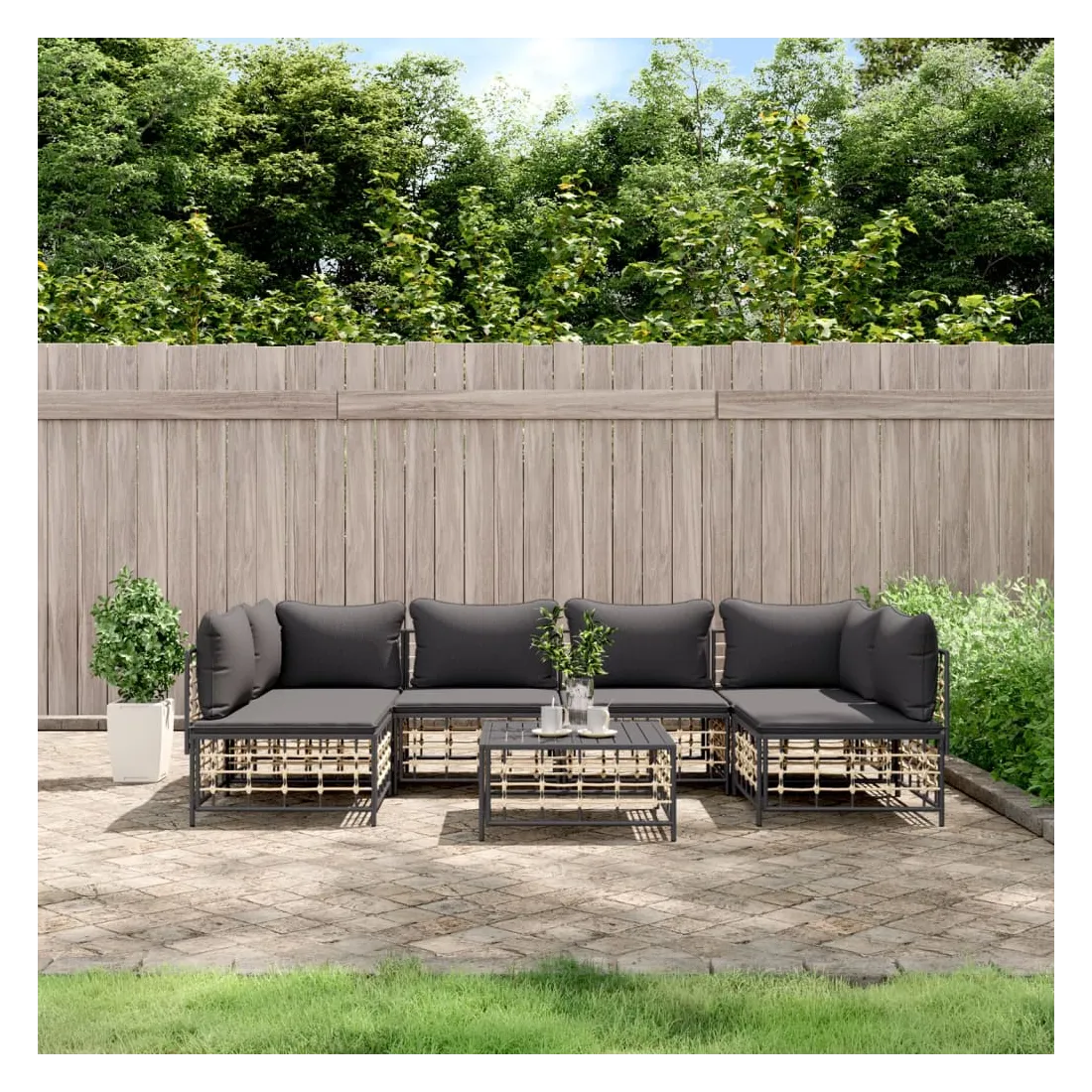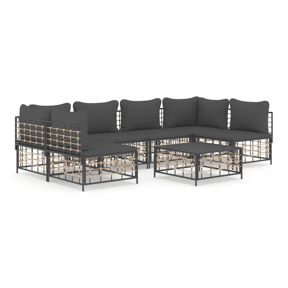 Profitez d'un moment de café confortable dans votre espace extérieur avec cet ensemble de salon de jardin ! C'est un complément parfait à votre jardin et à votre terrasse, créant une impression durable ! Matériau résistant aux intempéries : le poly rotin est résistant aux intempéries et facile à nettoyer. Il reste beau à l'extérieur pendant une longue période de temps. Il est plus économique que d'autres matériaux, tout en offrant une excellente qualité, une commodité et un aspect esthétique.Cadre robuste et stable : le cadre en acier de l'ensemble de salon assure robustesse et stabilité.Expérience d'assise confortable : le dossier ajoute un confort d'assise supplémentaire pour l'ensemble de salon. De plus, les coussins bien rembourrés offrent un confort pour votre temps d'assise.Dessus de table robuste : le dessus de table robuste de la table basse est parfait pour placer des repas, des boissons, des vases, des bols de fruits ou d'autres objets décoratifs.Conception modulaire : l'ensemble de salon de jardin est flexible et facile à déplacer, vous pouvez donc le combiner avec d'autres segments modulaires de la boutique en ligne pour créer vos propres configurations personnelles de salon de jardin ! Remarque :Pour que vos meubles d'extérieur restent beaux, nous vous recommandons de les protéger avec une housse imperméable.