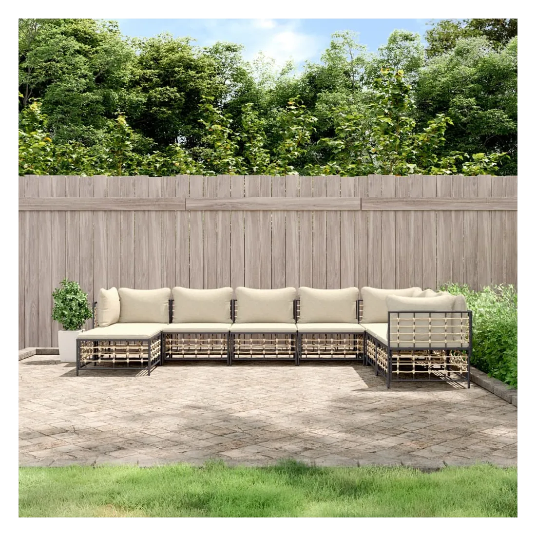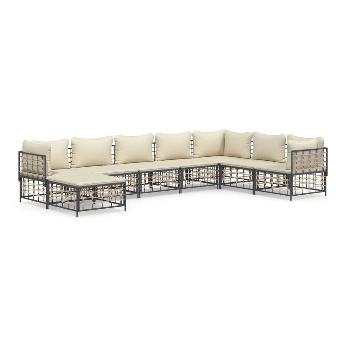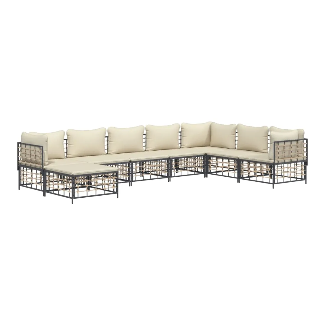 Salon de jardin 8 pcs avec coussins anthracite résine tressée