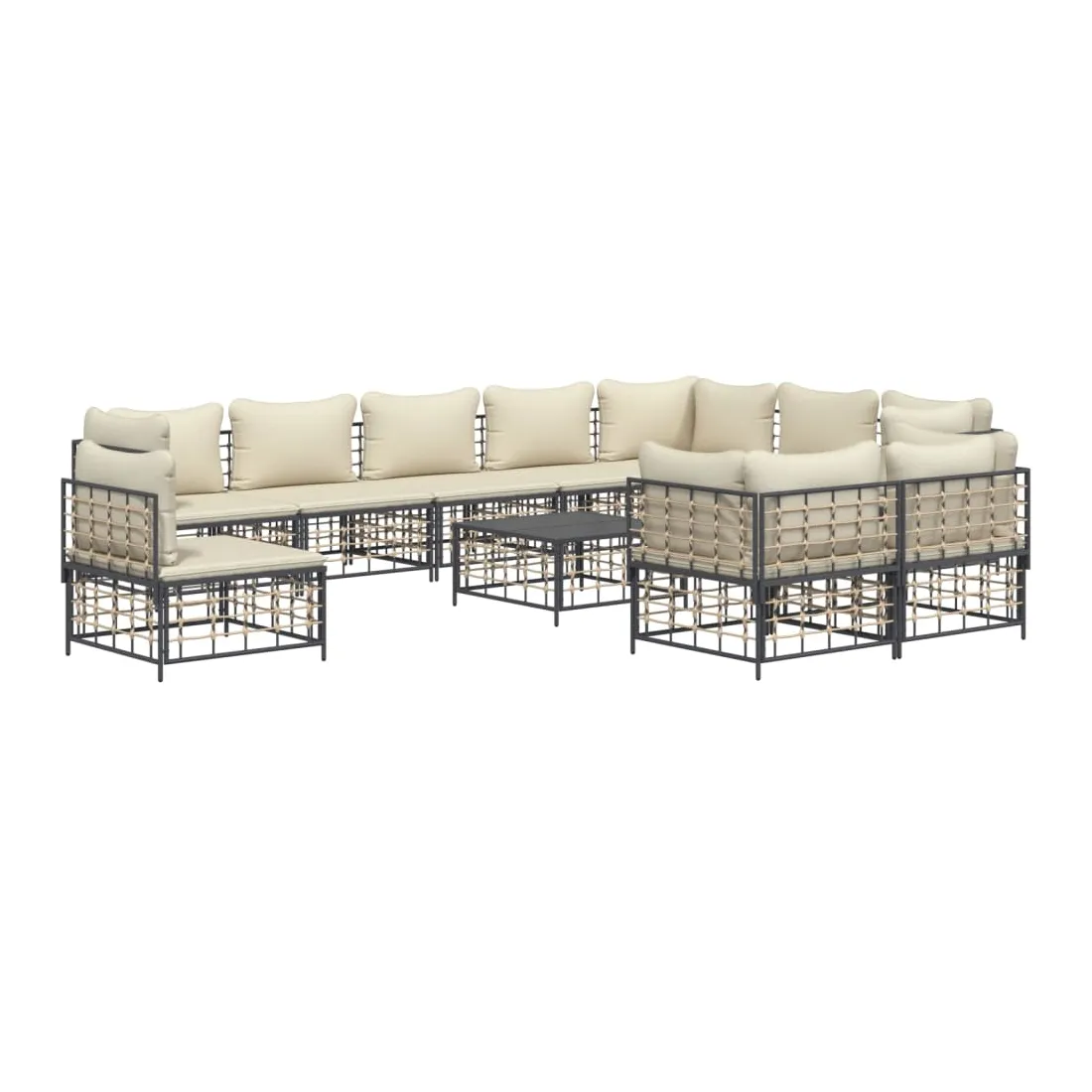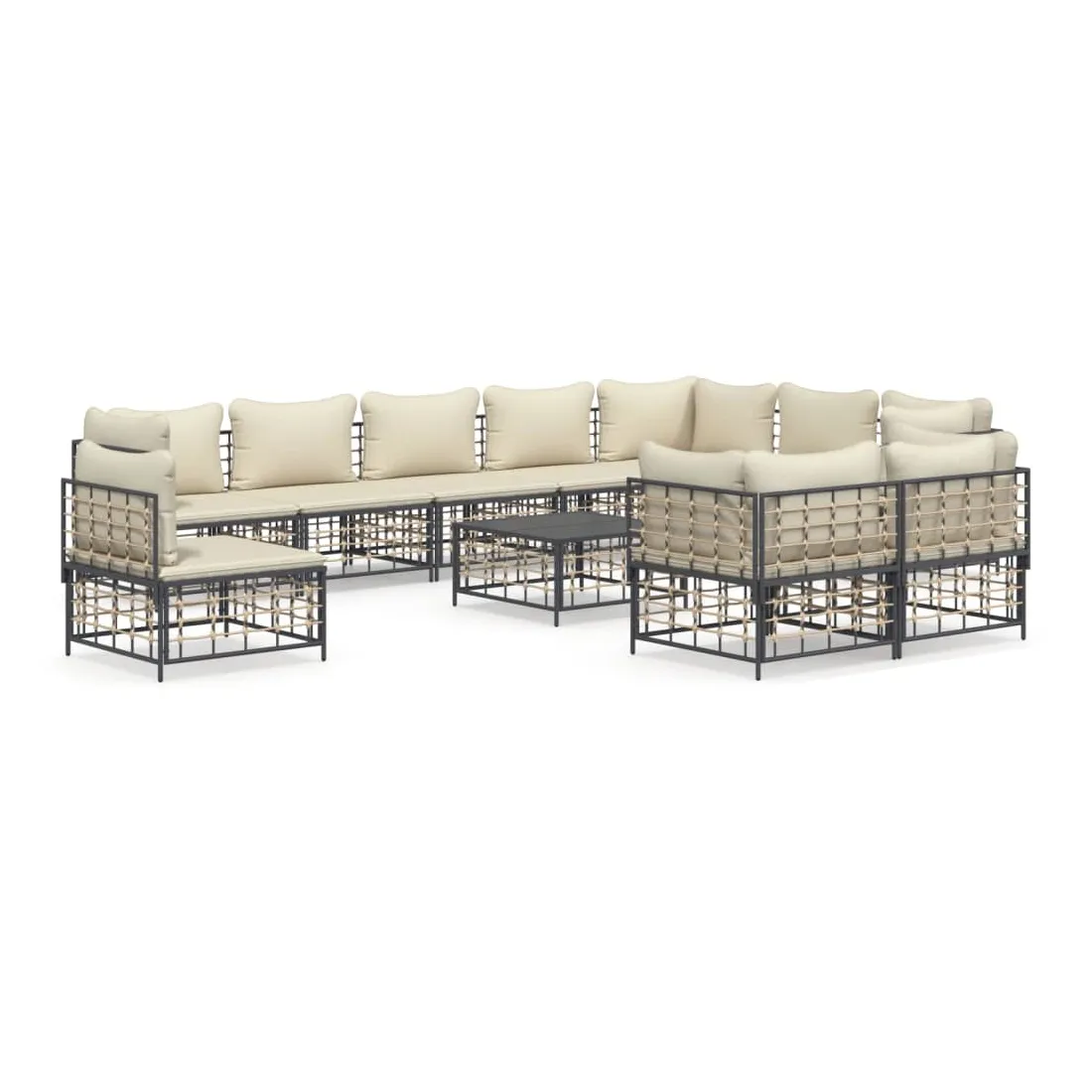 Salon de jardin 11 pcs avec coussins anthracite résine tressée