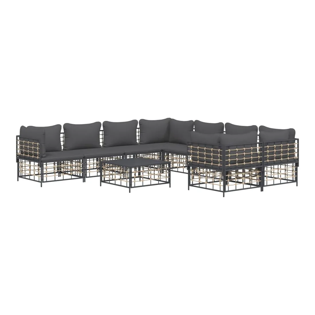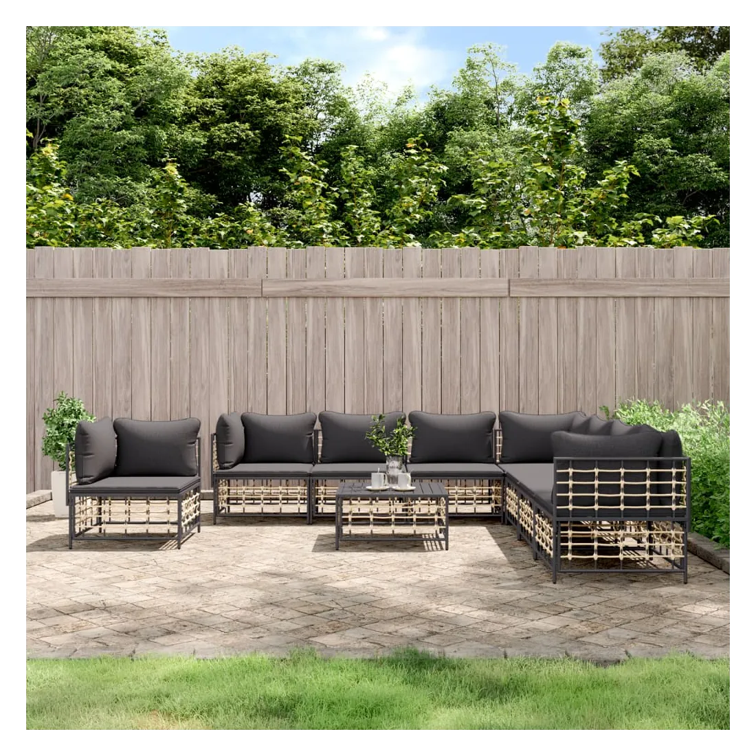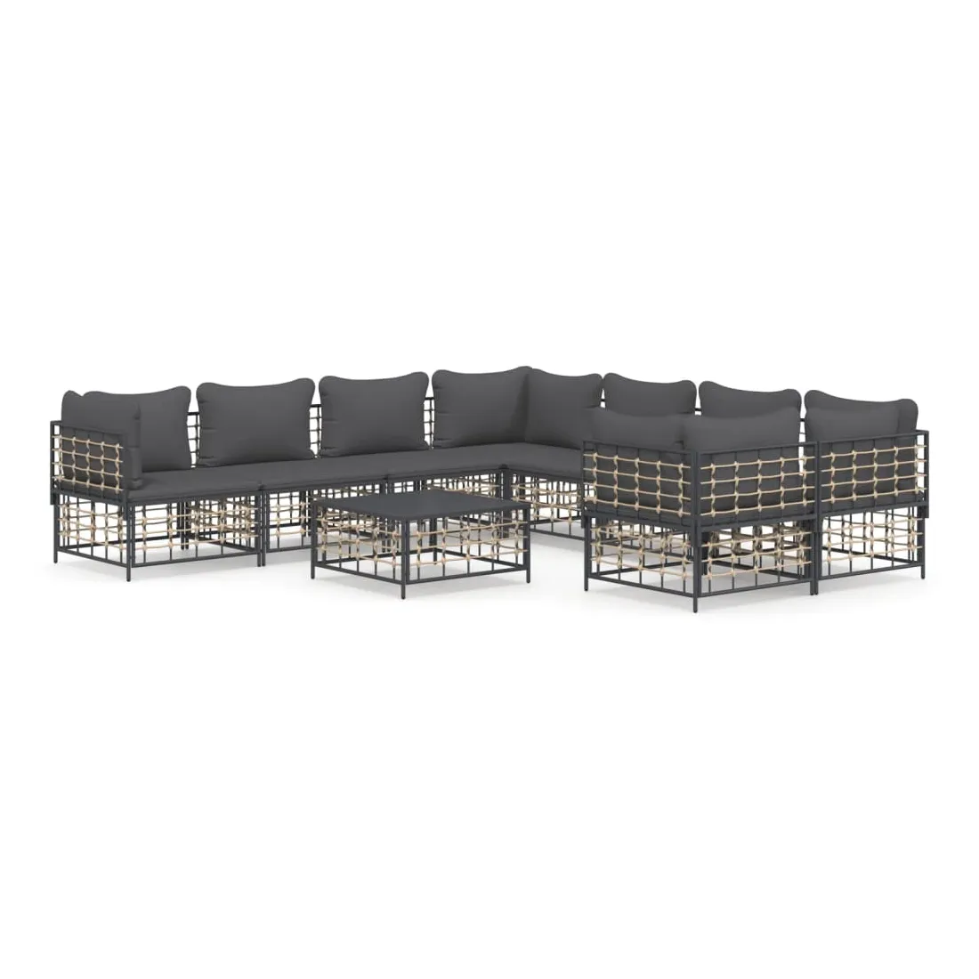 Profitez d'un moment de café confortable dans votre espace extérieur avec cet ensemble de salon de jardin ! C'est un complément parfait à votre jardin et à votre terrasse, créant une impression durable ! Matériau résistant aux intempéries : le poly rotin est résistant aux intempéries et facile à nettoyer. Il reste beau à l'extérieur pendant une longue période de temps. Il est plus économique que d'autres matériaux, tout en offrant une excellente qualité, une commodité et un aspect esthétique.Cadre robuste et stable : le cadre en acier de l'ensemble de salon assure robustesse et stabilité.Expérience d'assise confortable : le dossier ajoute un confort d'assise supplémentaire pour l'ensemble de salon. De plus, les coussins bien rembourrés offrent un confort pour votre temps d'assise.Dessus de table robuste : le dessus de table robuste de la table basse est parfait pour placer des repas, des boissons, des vases, des bols de fruits ou d'autres objets décoratifs.Conception modulaire : l'ensemble de salon de jardin est flexible et facile à déplacer, vous pouvez donc le combiner avec d'autres segments modulaires de la boutique en ligne pour créer vos propres configurations personnelles de salon de jardin ! Remarque :Pour que vos meubles d'extérieur restent beaux, nous vous recommandons de les protéger avec une housse imperméable.