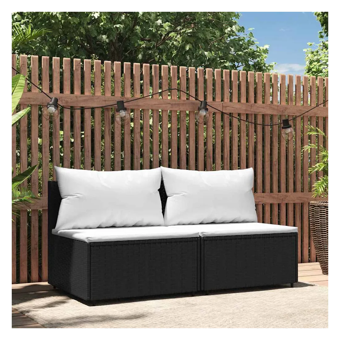 vidaXLCes canapés centraux de jardin tendances, au design élégant et contemporain, sont parfaits pour manger ou vous détendre dans votre jardin. Matériau résistant aux intempéries : la résine tressée, également connue sous le nom de rotin poly, résiste aux intempéries et est facile à nettoyer. Elle reste belle à l'extérieur pendant une longue période. Elle offre une excellente qualité, commodité et un aspect esthétique.Cadre robuste : le cadre en acier enduit de poudre rend le canapé robuste et stable pour une utilisation quotidienne à l'extérieur.Design modulaire : le canapé d'extérieur est flexible et facile à déplacer, vous pouvez donc le combiner avec d'autres segments modulaires de la boutique en ligne pour créer vos propres configurations de salon de jardin !Expérience d'assise confortable : le dossier ajoute un confort d'assise supplémentaire au canapé de jardin. De plus, les coussins bien rembourrés offrent du confort pendant votre temps d'assise. Bon à savoir :Pour faciliter au maximum le montage, chaque produit est livré avec des instructions. Remarque :Le produit est conçu pour une utilisation à l'extérieur uniquement. Ne le rangez pas à l'intérieur.Pour que vos meubles d'extérieur restent beaux, nous vous recommandons de les protéger avec une housse imperméable.
