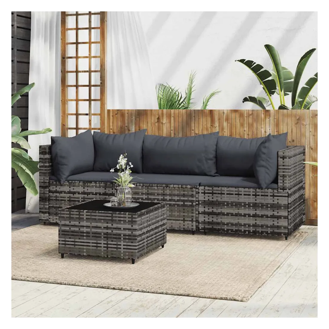 Cet ensemble de salon de jardin tendance, au design élégant et contemporain, est un excellent choix pour manger ou vous détendre dans votre jardin. Matériau résistant aux intempéries : la résine tressée, également connue sous le nom de rotin poly, résiste aux intempéries et est facile à nettoyer. Elle reste belle à l'extérieur pendant une longue période. Elle offre une excellente qualité, commodité et un aspect esthétique.Cadre robuste : les cadres en acier enduit de poudre rendent l'ensemble de salon d'extérieur robuste et stable pour une utilisation quotidienne à l'extérieur.Dessus de table pratique : le dessus lisse de la table de jardin est en verre trempé, facile à nettoyer avec un chiffon humide. De plus, le dessus robuste est parfait pour placer des repas, des boissons et d'autres objets décoratifs.Conception modulaire : l'ensemble de salon de jardin est flexible et facile à déplacer, vous pouvez donc le combiner avec d'autres segments modulaires dans la boutique en ligne pour créer vos propres configurations d'ensemble de salon de jardin !Expérience d'assise confortable : le dossier ajoute un confort d'assise supplémentaire au canapé de jardin. De plus, les coussins bien rembourrés offrent du confort pendant votre temps d'assise. Bon à savoir :Pour faciliter au maximum le montage, chaque produit est livré avec des instructions. Remarque :Le produit est conçu pour une utilisation à l'extérieur uniquement. Ne le rangez pas à l'intérieur.Pour que vos meubles d'extérieur restent beaux, nous vous recommandons de les protéger avec une housse imperméable.