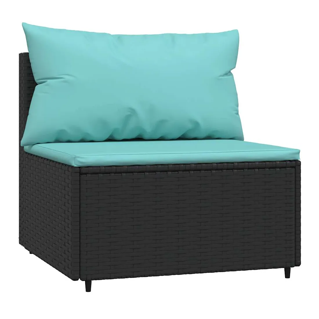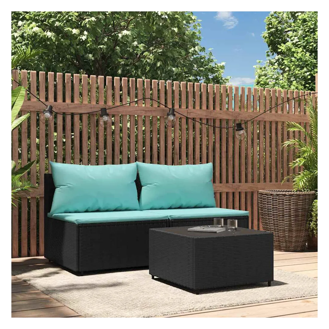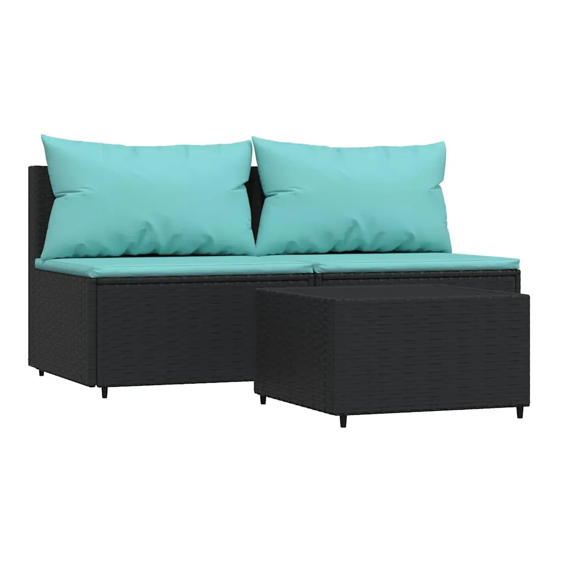 Salon de jardin 3 pcs avec coussins Noir Résine tressée