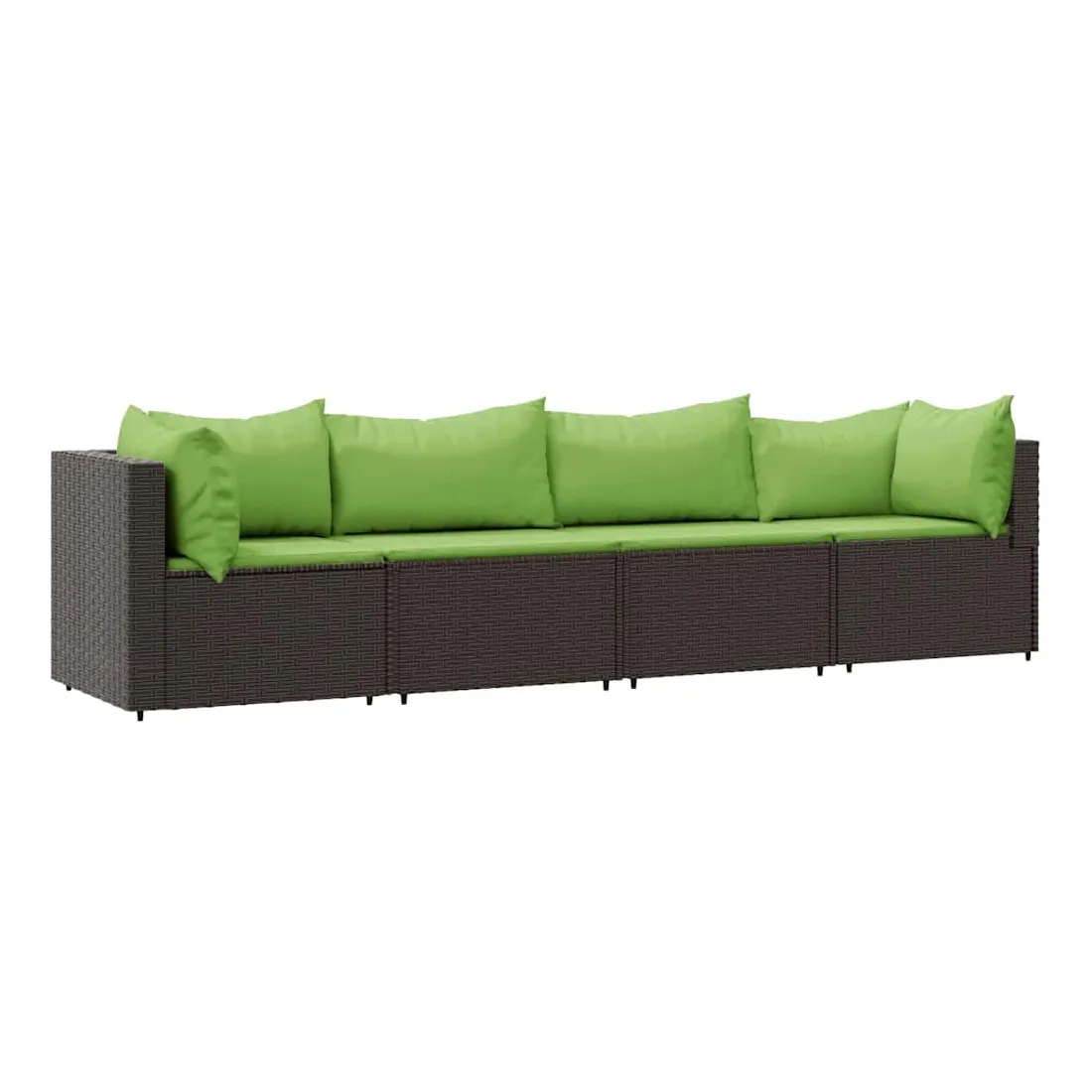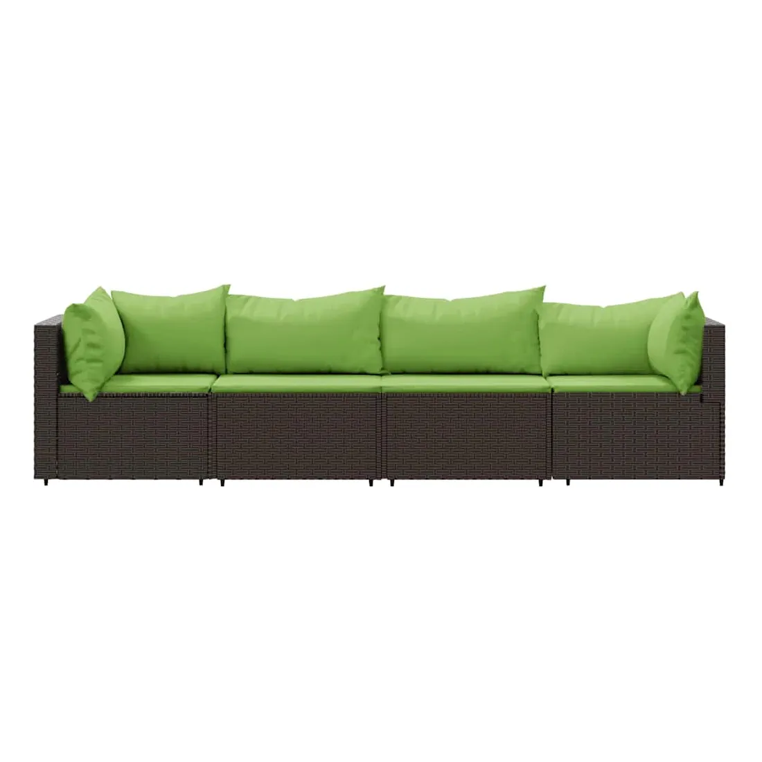 Salon de jardin 4 pcs avec coussins Marron Résine tressée