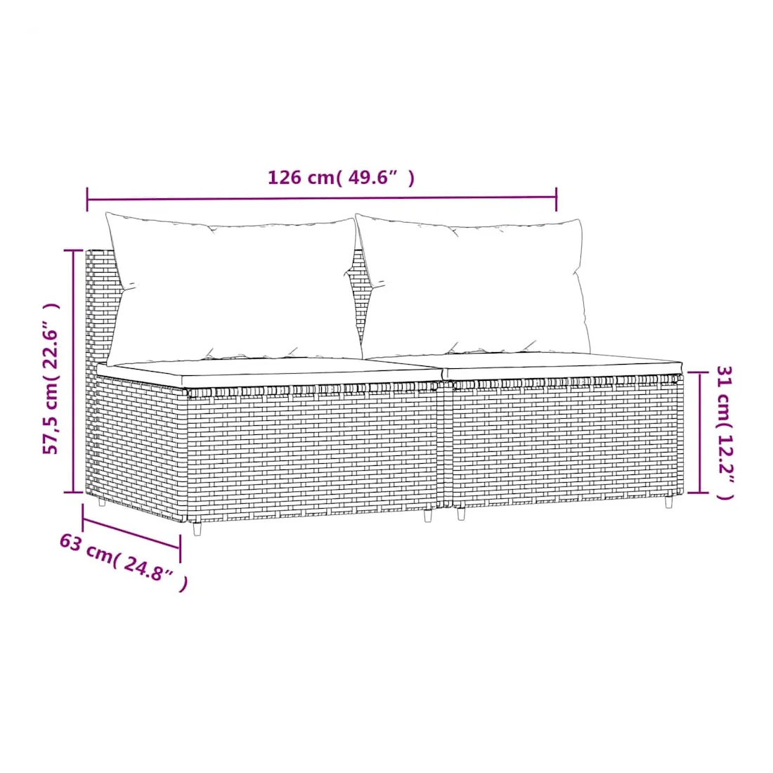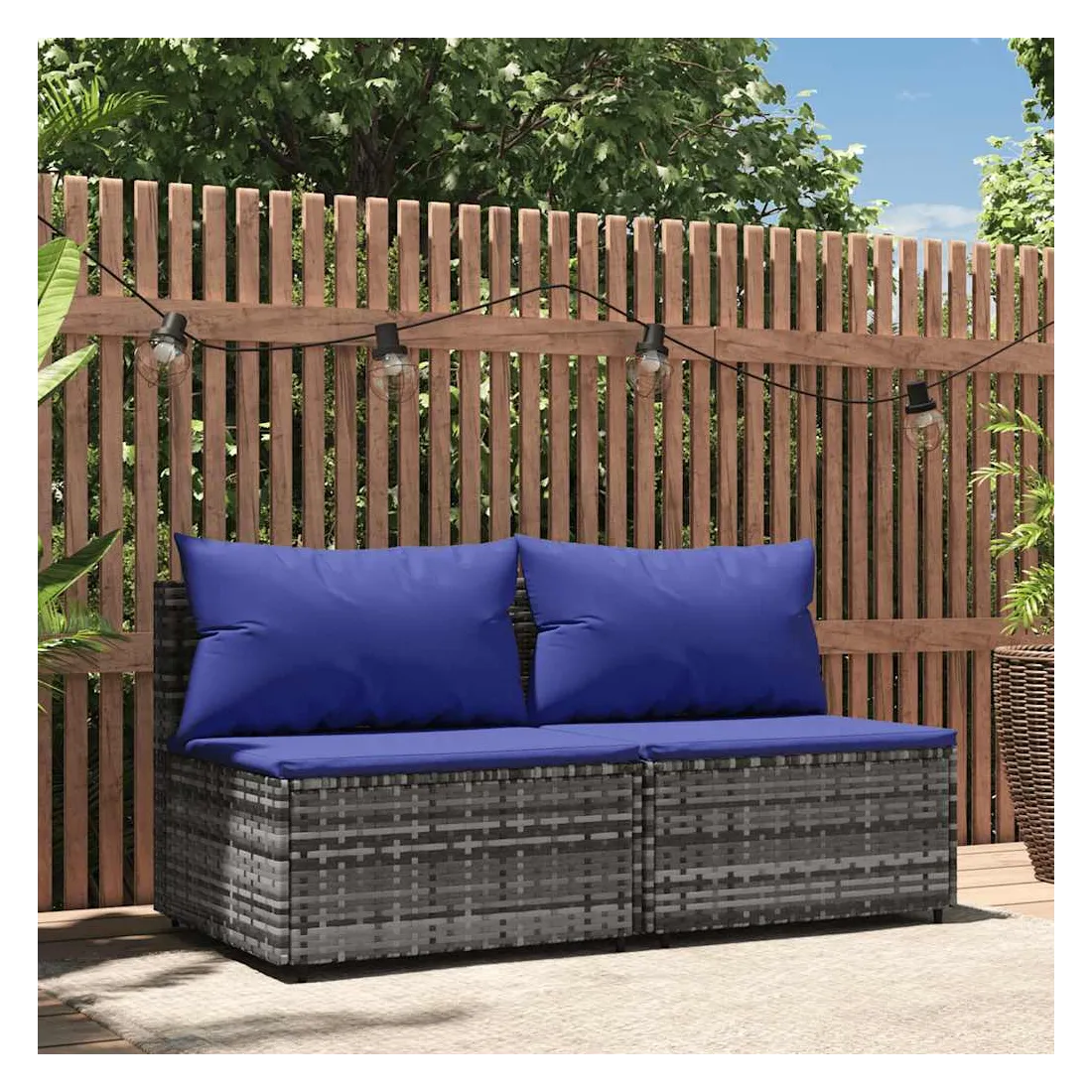 Ces canapés centraux de jardin tendances, au design élégant et contemporain, sont parfaits pour manger ou vous détendre dans votre jardin. Matériau résistant aux intempéries : la résine tressée, également connue sous le nom de rotin poly, résiste aux intempéries et est facile à nettoyer. Elle reste belle à l'extérieur pendant une longue période. Elle offre une excellente qualité, commodité et un aspect esthétique.Cadre robuste : le cadre en acier enduit de poudre rend le canapé robuste et stable pour une utilisation quotidienne à l'extérieur.Design modulaire : le canapé d'extérieur est flexible et facile à déplacer, vous pouvez donc le combiner avec d'autres segments modulaires de la boutique en ligne pour créer vos propres configurations de salon de jardin !Expérience d'assise confortable : le dossier ajoute un confort d'assise supplémentaire au canapé de jardin. De plus, les coussins bien rembourrés offrent du confort pendant votre temps d'assise. Bon à savoir :Pour faciliter au maximum le montage, chaque produit est livré avec des instructions. Remarque :Le produit est conçu pour une utilisation à l'extérieur uniquement. Ne le rangez pas à l'intérieur.Pour que vos meubles d'extérieur restent beaux, nous vous recommandons de les protéger avec une housse imperméable.