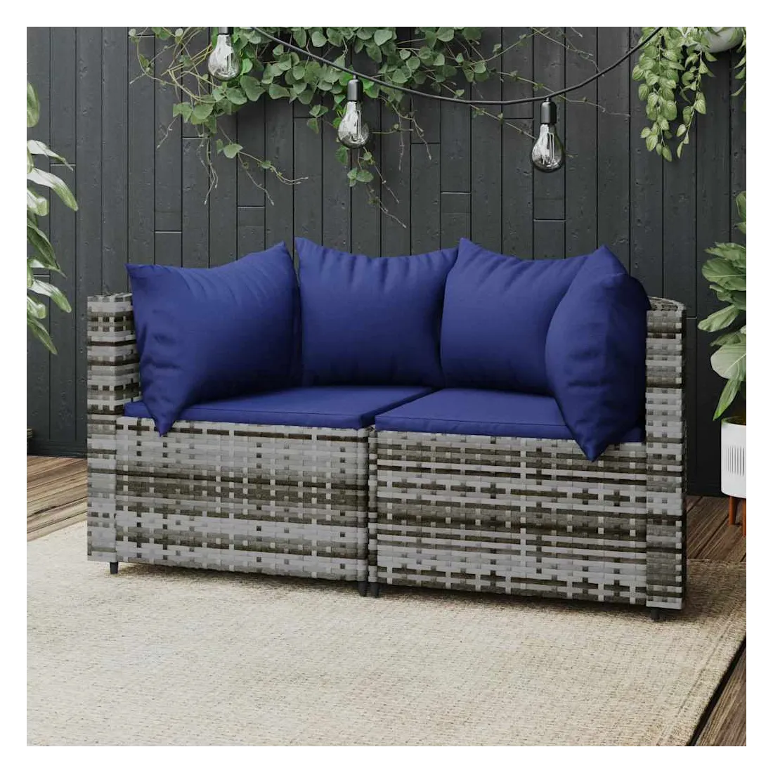 Ces canapés d'angle de jardin tendances, au design élégant et contemporain, sont parfaits pour manger ou vous détendre dans votre jardin. Matériau résistant aux intempéries : la résine tressée, également connue sous le nom de rotin poly, résiste aux intempéries et est facile à nettoyer. Elle reste belle à l'extérieur pendant une longue période. Elle offre une excellente qualité, commodité et un aspect esthétique.Cadre robuste : le cadre en acier enduit de poudre rend le canapé robuste et stable pour une utilisation quotidienne à l'extérieur.Design modulaire : le canapé d'extérieur est flexible et facile à déplacer, vous pouvez donc le combiner avec d'autres segments modulaires de la boutique en ligne pour créer vos propres configurations de salon de jardin !Expérience d'assise confortable : le dossier ajoute un confort d'assise supplémentaire au canapé de jardin. De plus, les coussins bien rembourrés offrent du confort pendant votre temps d'assise. Bon à savoir :Pour faciliter au maximum le montage, chaque produit est livré avec des instructions. Remarque :Le produit est conçu pour une utilisation à l'extérieur uniquement. Ne le rangez pas à l'intérieur.Pour que vos meubles d'extérieur restent beaux, nous vous recommandons de les protéger avec une housse imperméable.