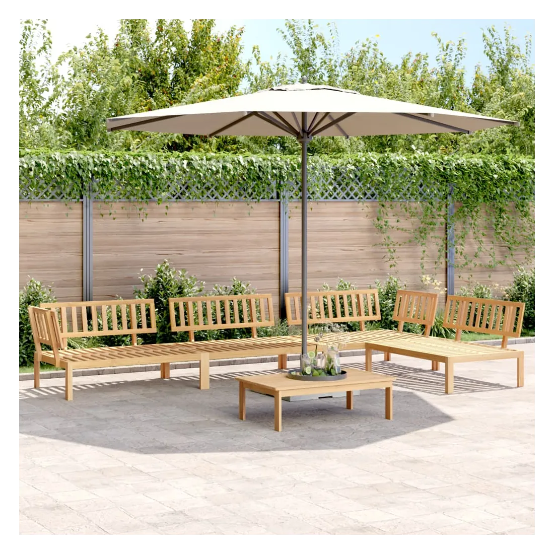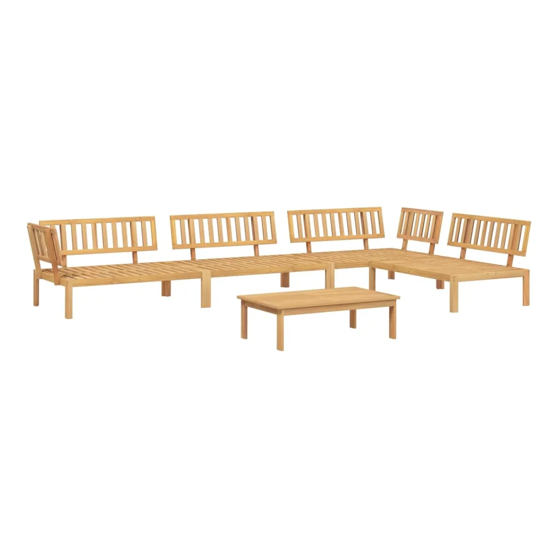 Cet ensemble de canapés palette en bois comprend 1 table et 4 canapés. C'est un excellent choix pour une utilisation relaxante en extérieur. Matériau durable : le bois d'acacia massif est un matériau naturel magnifique. Le bois d'acacia est un bois dur tropical, qui est dense, robuste et durable. Sa finition à l'huile permet à cet ensemble de meubles d'être utilisée à l'extérieur.Expérience d'assise confortable : le dossier ajoute un confort d'assise supplémentaire au canapé d'extérieur. Design modulaire : le canapé sectionnel est flexible et facile à déplacer. Vous pouvez le combiner avec d'autres segments modulaires disponibles dans le menu déroulant pour créer vos propres configurations de salon de jardin ! Bon à savoir :Pour que vos meubles d'extérieur restent beaux, nous vous recommandons de les protéger avec une housse imperméable.Le coussin n'est pas inclus avec ce canapé palette. Nous offrons un coussin de palette standard de 120x80 cm. Vous pouvez consulter notre boutique pour trouver un coussin assorti.