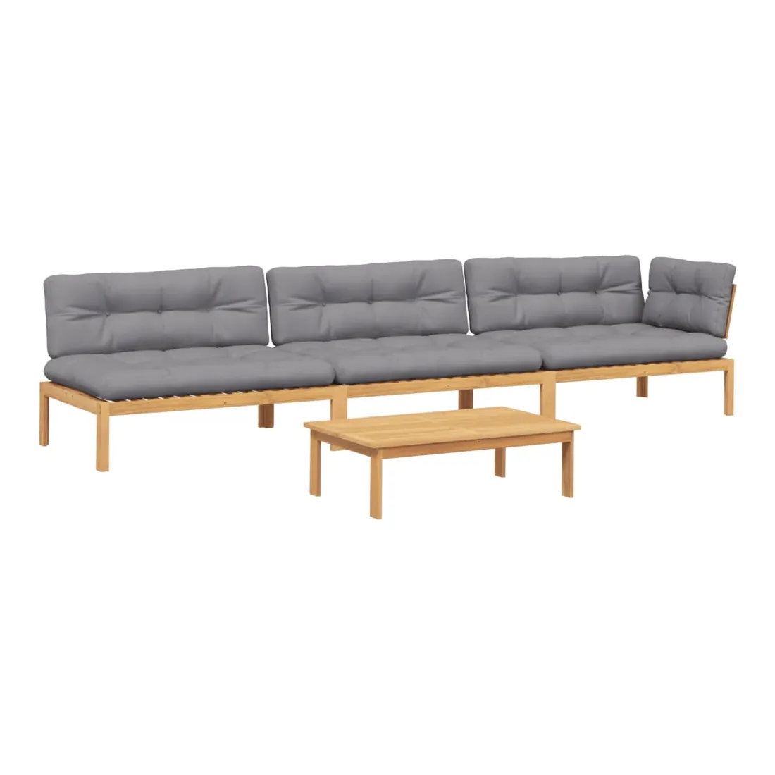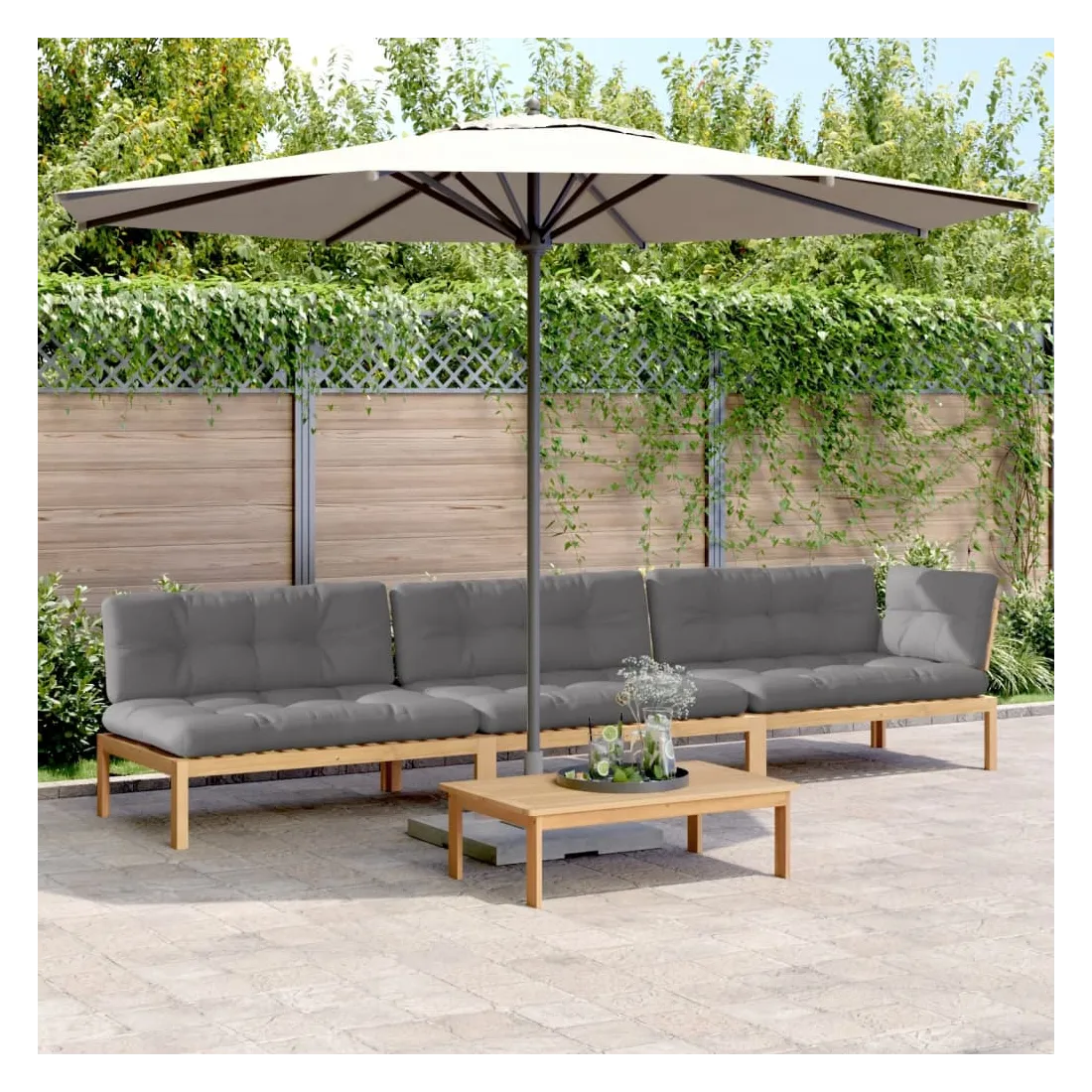 vidaXLCet ensemble de canapés palette en bois comprend 1 table et 3 canapés. C'est un excellent choix pour une utilisation relaxante en extérieur. Matériau durable : le bois d'acacia massif est un matériau naturel magnifique. Le bois d'acacia est un bois dur tropical, qui est dense, robuste et durable. Sa finition à l'huile permet à cet ensemble de meubles d'être utilisée à l'extérieur.Expérience d'assise confortable : le dossier ajoute un confort d'assise supplémentaire pour le canapé d'extérieur. Ce mobilier d'extérieur, doté d'un coussin épais, offre une expérience d'assise confortable.Design modulaire : le canapé sectionnel est flexible et facile à déplacer. Vous pouvez le combiner avec d'autres segments modulaires disponibles dans le menu déroulant pour créer vos propres configurations de salon de jardin ! Bon à savoir :Pour que vos meubles d'extérieur restent beaux, nous vous recommandons de les protéger avec une housse imperméable.