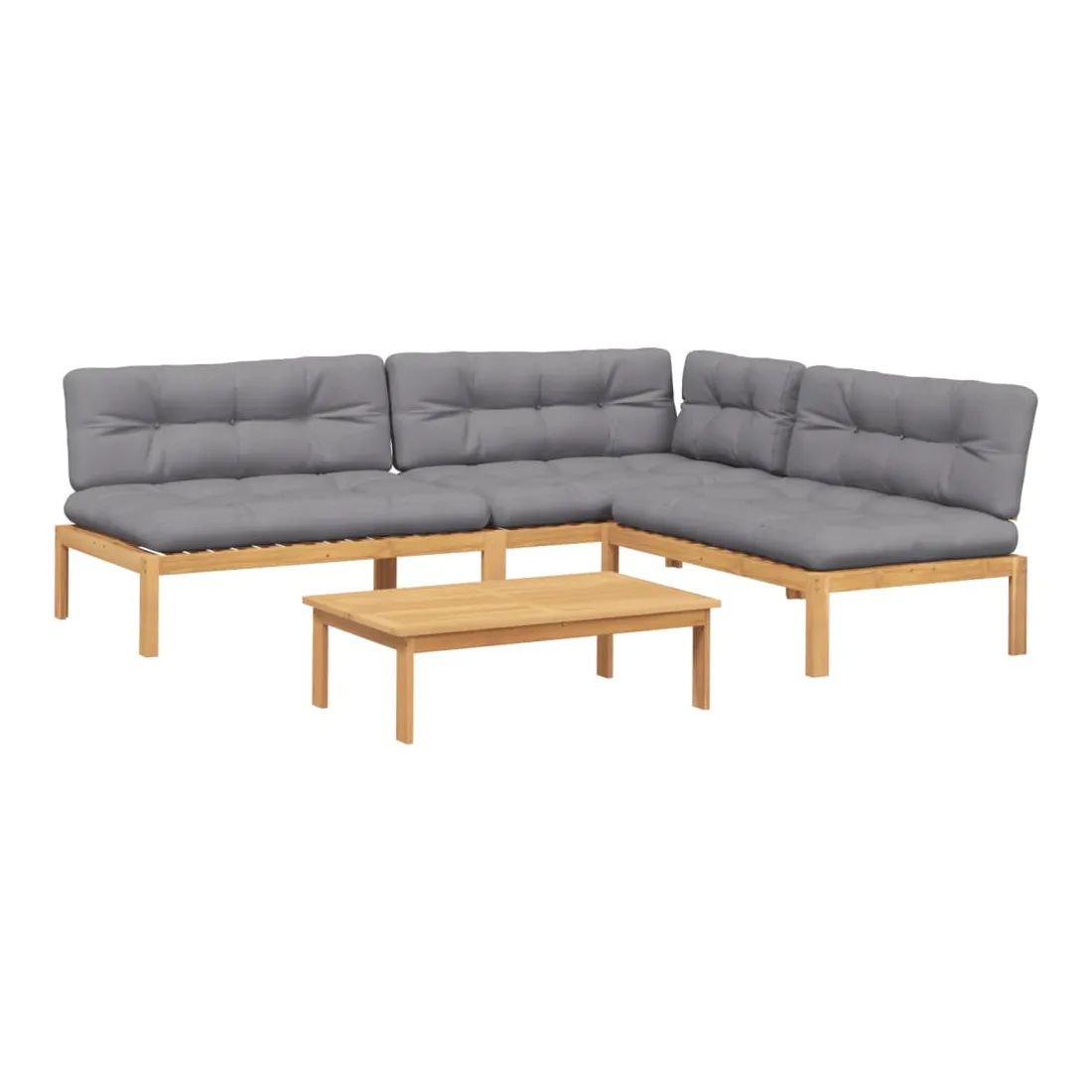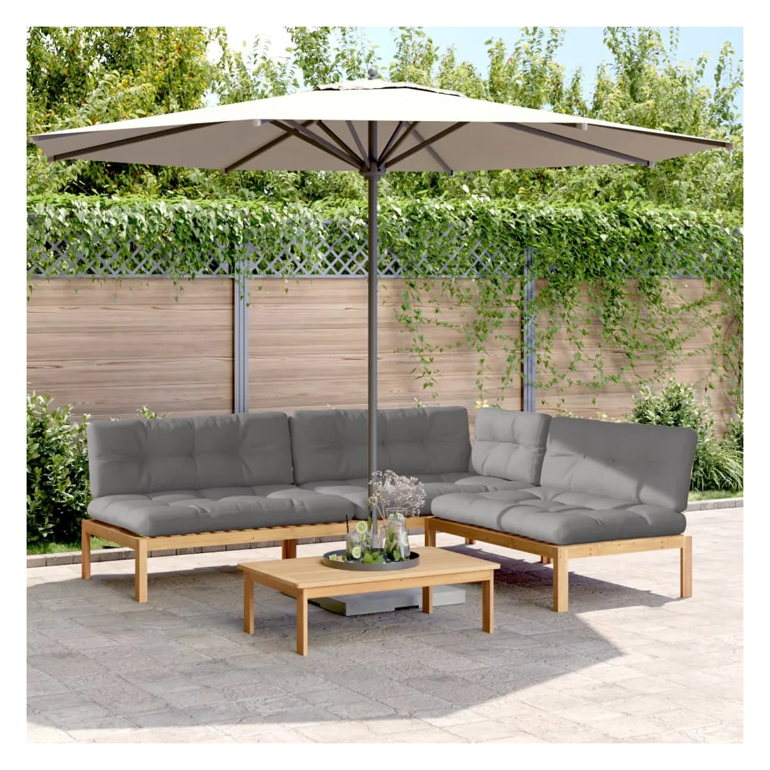 vidaXLCet ensemble de canapés palette en bois comprend 1 table et 3 canapés. C'est un excellent choix pour une utilisation relaxante en extérieur. Matériau durable : le bois d'acacia massif est un matériau naturel magnifique. Le bois d'acacia est un bois dur tropical, qui est dense, robuste et durable. Sa finition à l'huile permet à cet ensemble de meubles d'être utilisée à l'extérieur.Expérience d'assise confortable : le dossier ajoute un confort d'assise supplémentaire pour le canapé d'extérieur. Ce mobilier d'extérieur, doté d'un coussin épais, offre une expérience d'assise confortable.Design modulaire : le canapé sectionnel est flexible et facile à déplacer. Vous pouvez le combiner avec d'autres segments modulaires disponibles dans le menu déroulant pour créer vos propres configurations de salon de jardin ! Bon à savoir :Pour que vos meubles d'extérieur restent beaux, nous vous recommandons de les protéger avec une housse imperméable.
