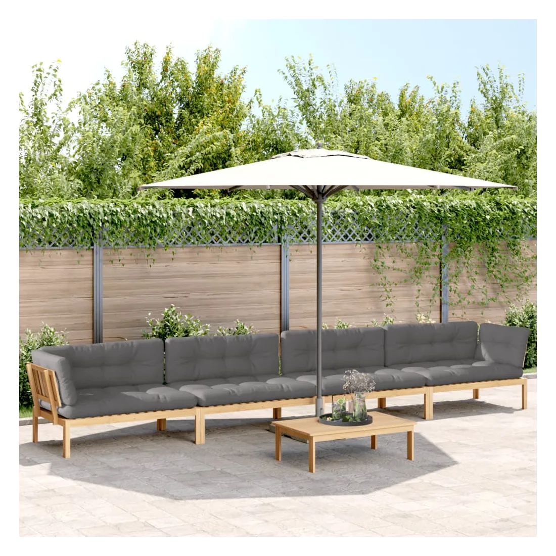 vidaXLCet ensemble de canapés palette en bois comprend 1 table et 4 canapés. C'est un excellent choix pour une utilisation relaxante en extérieur. Matériau durable : le bois d'acacia massif est un matériau naturel magnifique. Le bois d'acacia est un bois dur tropical, qui est dense, robuste et durable. Sa finition à l'huile permet à cet ensemble de meubles d'être utilisée à l'extérieur.Expérience d'assise confortable : le dossier ajoute un confort d'assise supplémentaire pour le canapé d'extérieur. Ce mobilier d'extérieur, doté d'un coussin épais, offre une expérience d'assise confortable.Design modulaire : le canapé sectionnel est flexible et facile à déplacer. Vous pouvez le combiner avec d'autres segments modulaires disponibles dans le menu déroulant pour créer vos propres configurations de salon de jardin ! Bon à savoir :Pour que vos meubles d'extérieur restent beaux, nous vous recommandons de les protéger avec une housse imperméable.