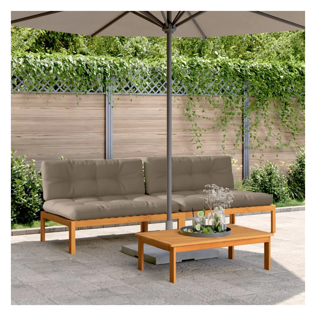 Savourez un café ou discutez avec votre famille et vos amis dans le jardin, l'arrière-cour ou sur le balcon avec ces canapés centraux en palette de jardin ! Matériau durable : le bois d'acacia massif est un matériau naturel magnifique. Le bois d'acacia un bois dur tropical, qui est dense, robuste et durable.Bonne ventilation et prévention de l'accumulation d'eau : la conception à lattes favorise une circulation optimale de l'air et empêche efficacement l'accumulation d'eau, assurant ainsi une assise sèche et confortable.Expérience d'assise confortable : le dossier ajoute un confort d'assise supplémentaire pour le canapé d'extérieur. Ce mobilier d'extérieur, doté d'un coussin épais, offre une expérience d'assise confortable.Conception modulaire : cet ensemble de meubles d'extérieur a une conception modulaire, ce qui le rend complètement flexible et facile à déplacer, afin que vous puissiez créer un agencement de meubles d'extérieur personnalisé. Bon à savoir :Pour que vos meubles d'extérieur restent beaux, nous vous recommandons de les protéger avec une housse imperméable.
