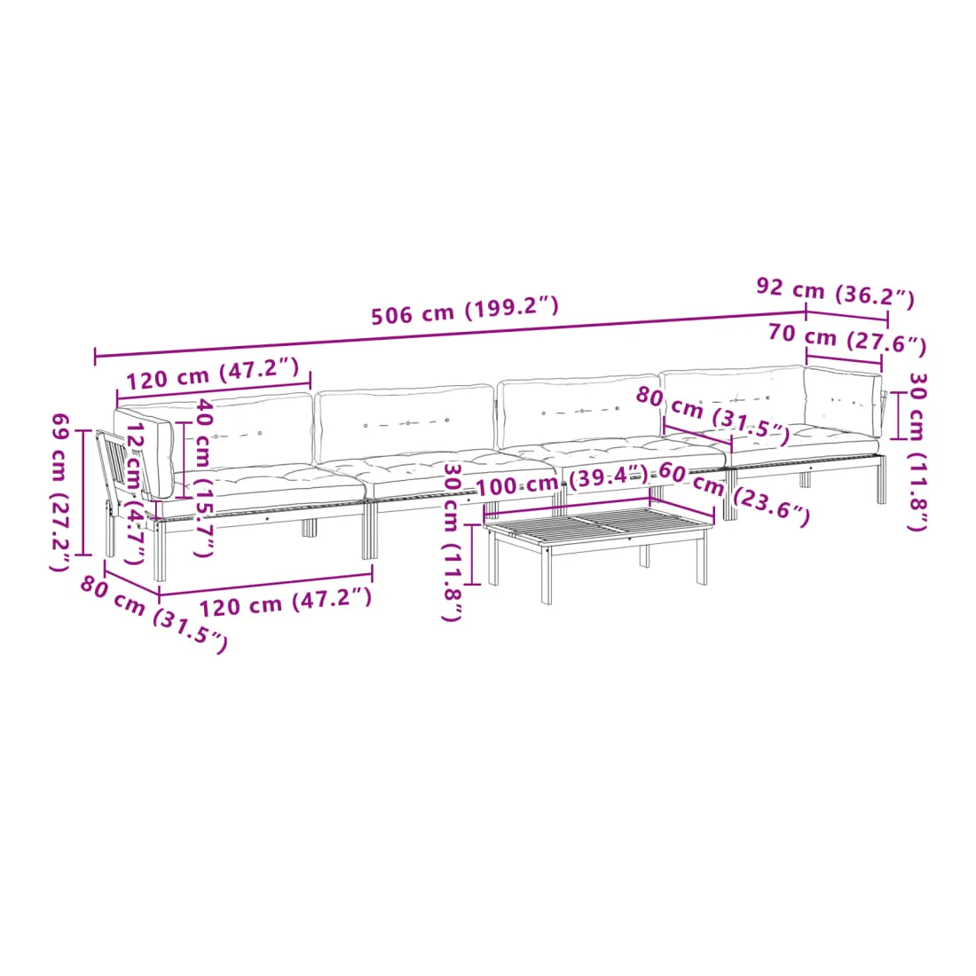 Salon palette de jardin avec coussins 5pcs bois d'acacia massif